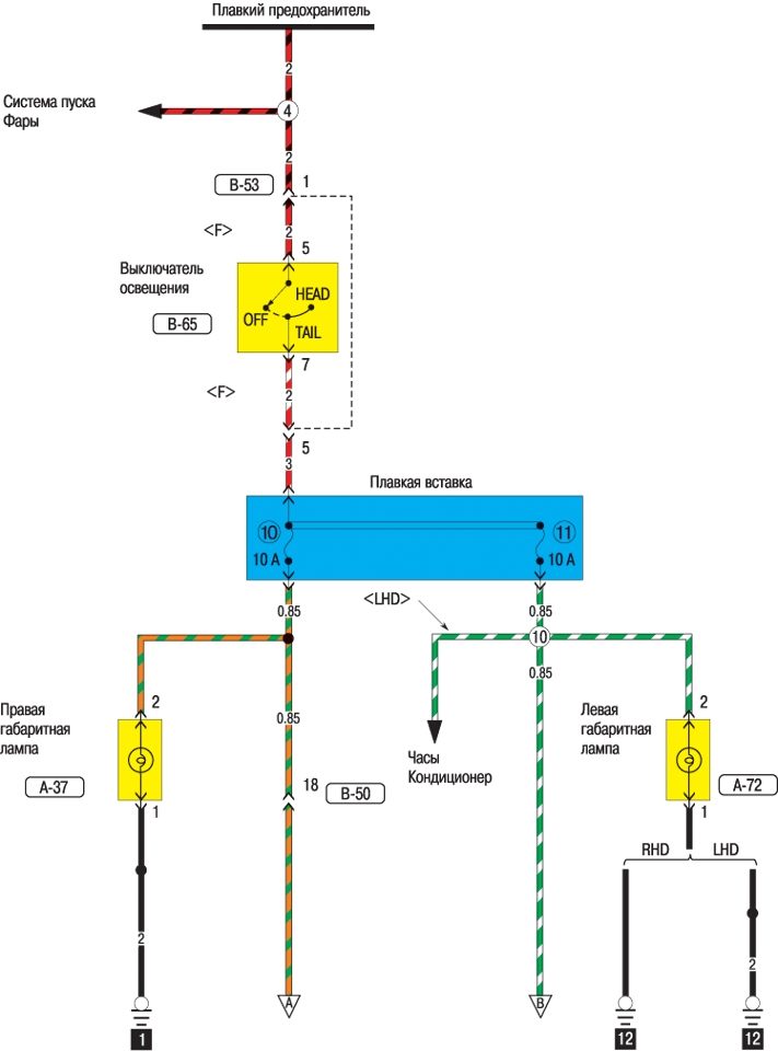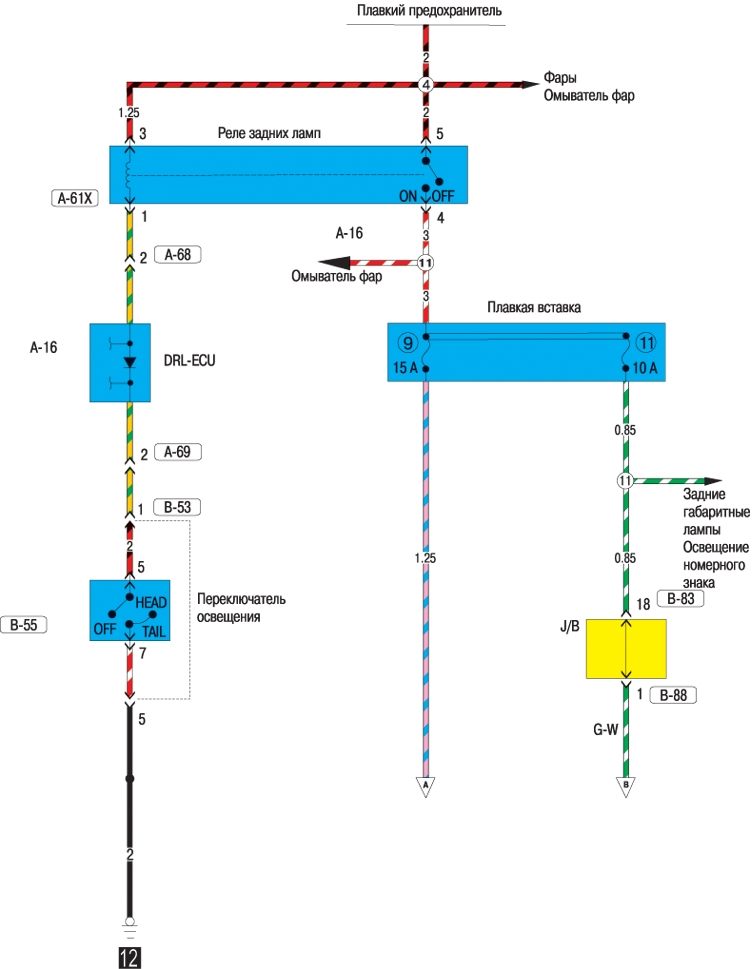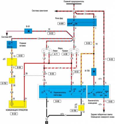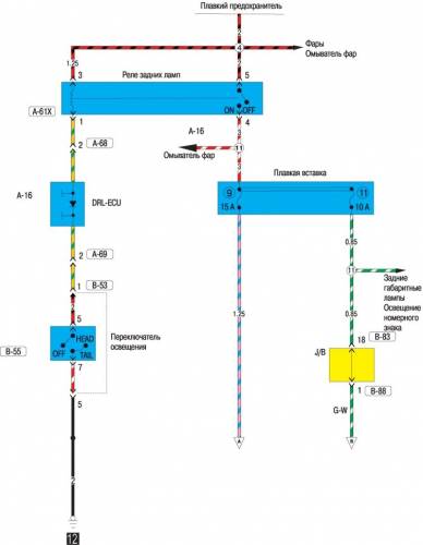 Схема электрооборудования задних фонарей и освещения номерного знака