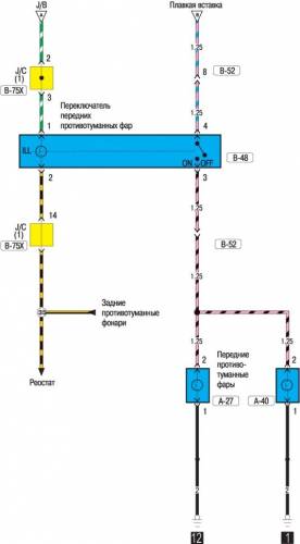 Передние противотуманные фары — эл.схема на Mitsubishi Carisma