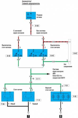 Стоп-сигналы на Mitsubishi Carisma — электросхема