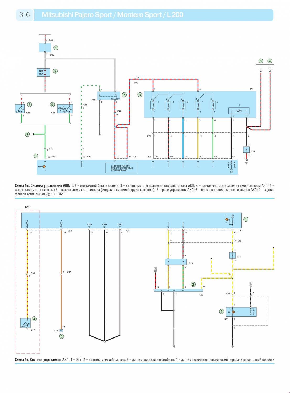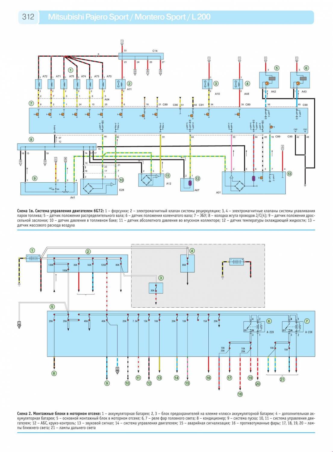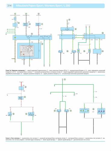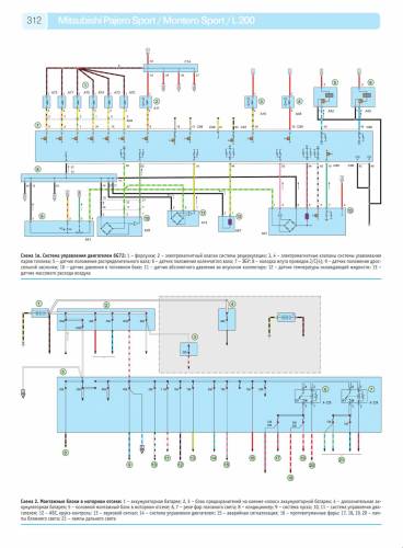 Предлагаем вашему вниманию цветные схемы электрооборудования, на такую известную модель Mitsubishi как Pajero Sport 1996-2008 г.г. Ну и вкратце об этом авто, адаптированный к бездорожью и самым экстремальным условиям вождения, более того, именно бездорожье является его подлинной стихией. Как и другие настоящие внедорожники, Pajero Sport обладает особыми ходовыми характеристиками – за счет мощного двигателя и тщательно выверенной подвески. Он способен играючи преодолевать крутые спуски и подъемы – благодаря высокому клиренсу и сверхпрочной рамной конструкции. Стоит отметить также высочайшее качество сборки и надежность всех узлов и агрегатов, что способствует не только простому и комфортному управлению, но и максимально долгому сроку службы и безопасности. Купив его однажды, вы не пожалеете ни разу!