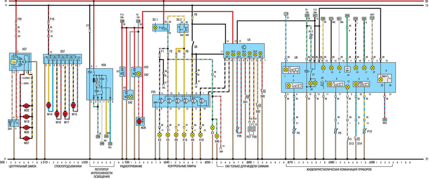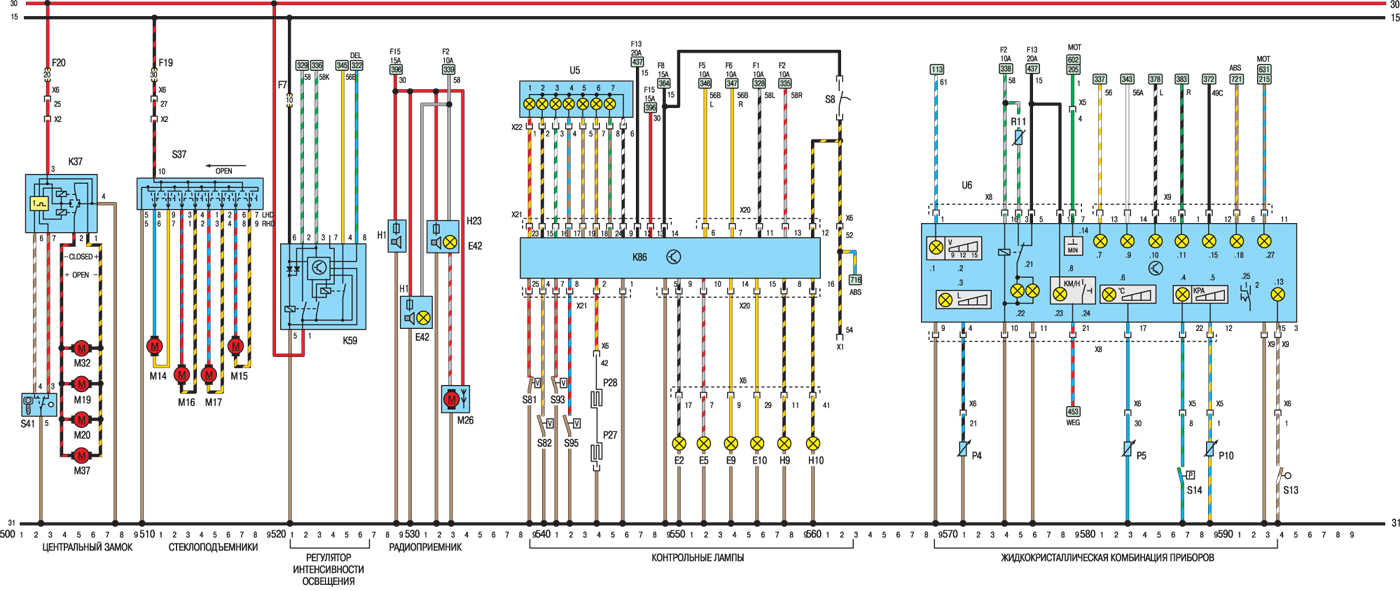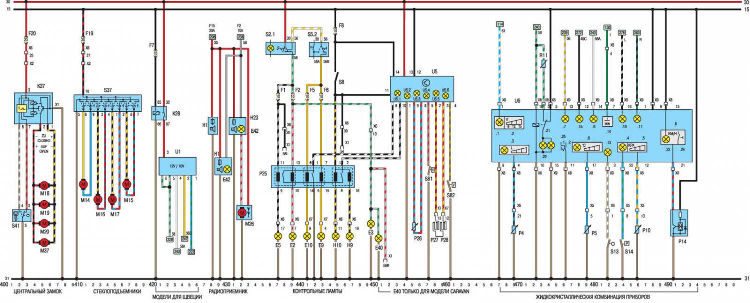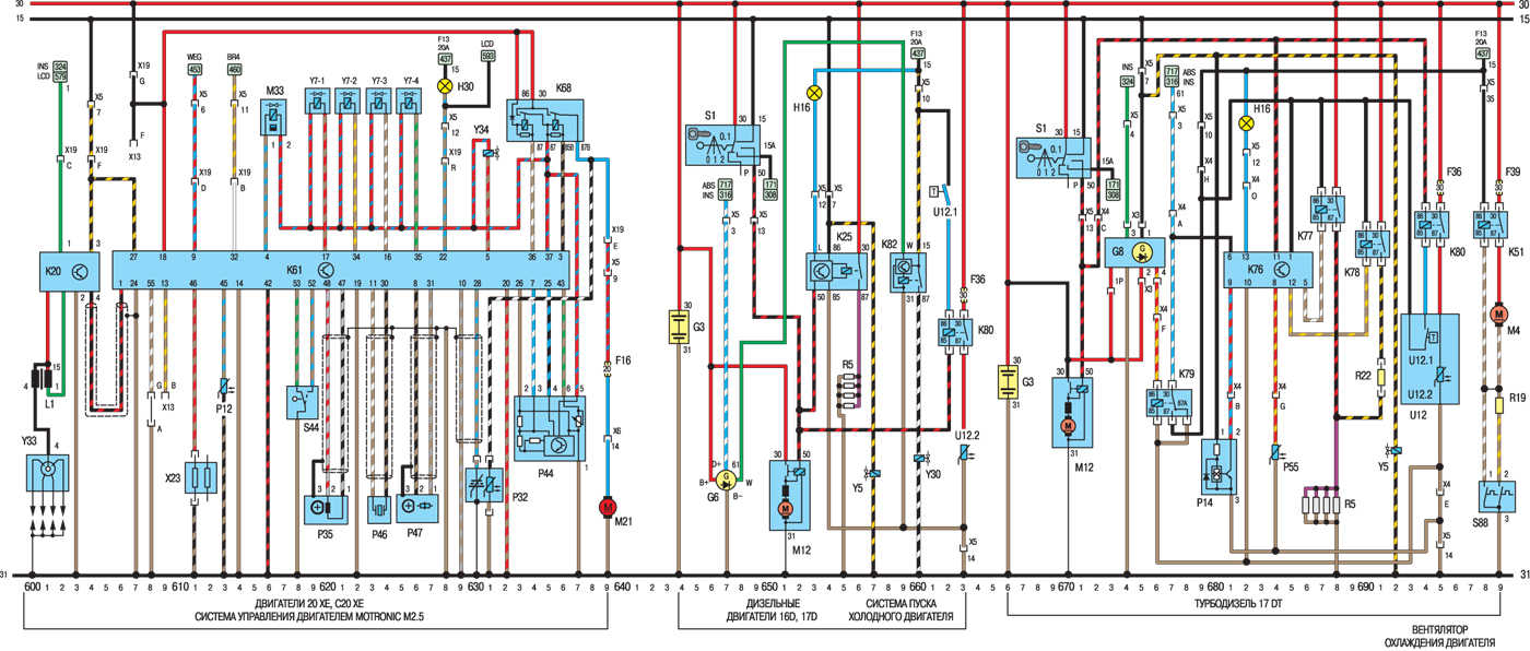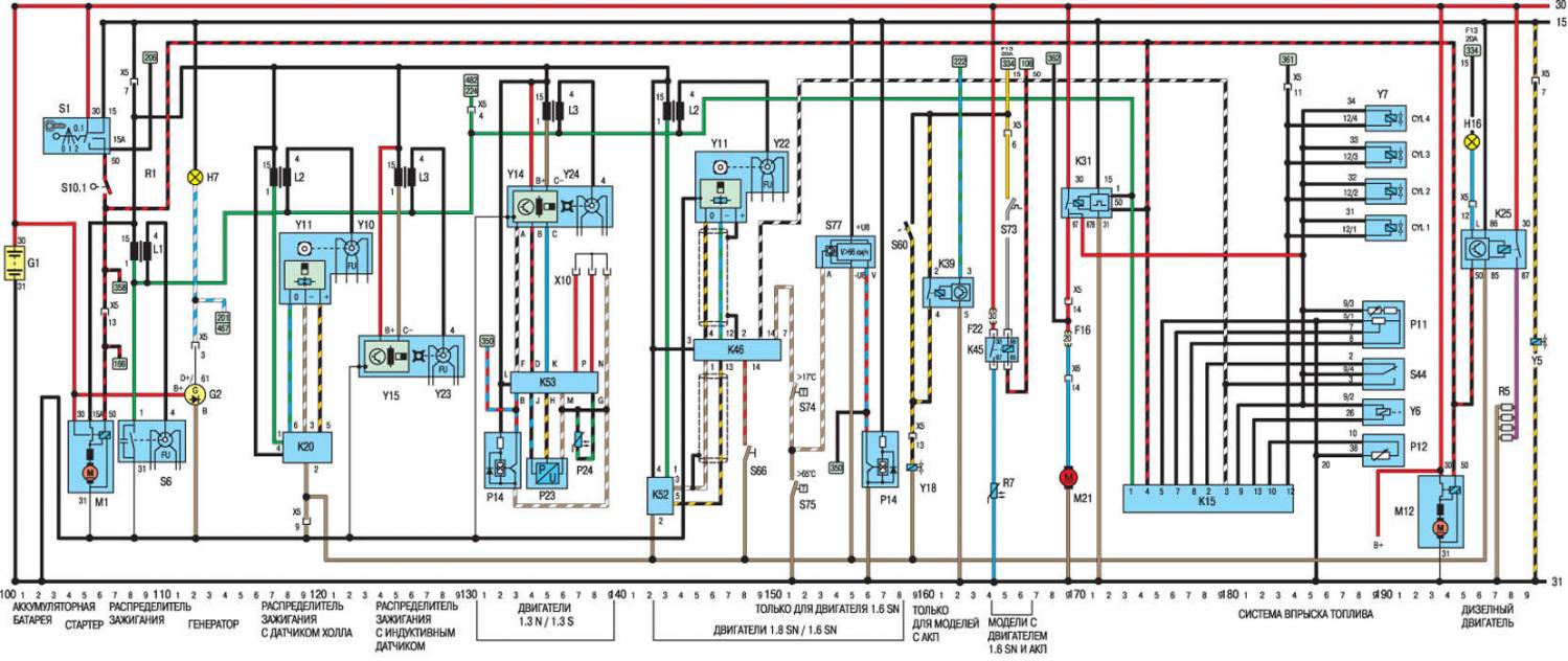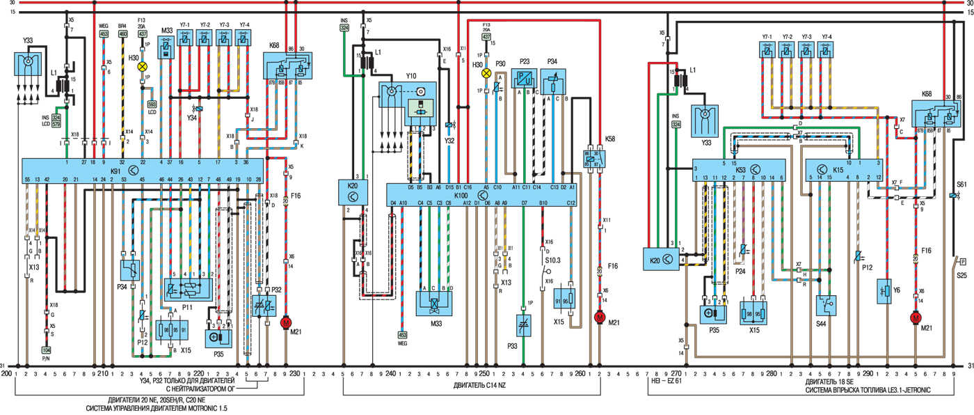 Поговорим об электросхемах к оборудованию на Opel Kadett 1984-1991 г.в. Выпускались юбилейные серии, приуроченные к выпуску 2000000 автомобиля с велюровыми салонами и формованными обивками дверей. После снятия модели с конвеера в Рюссельсхайме, лицензию на их производство приобрела фирма ДЭУ и выпускала их до 1995г. под маркой ДЭУ Рэйсер с моторами 1.5л., а после рестайлинга модель получила имя ДЭУ Нексия, которая выпускается до сих пор в Узбекистане, на заводе «Уз-Деу», правда только одной модификации — седан.