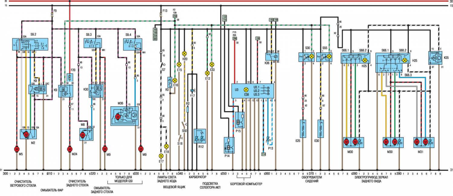 S9.4 Выключатель заднего стеклоочистителя (GTE) 329, 330