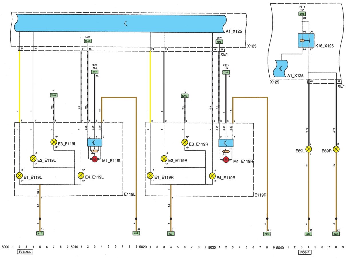 Фары (кроме ксеоновых)/Противотуманные фары — схема
