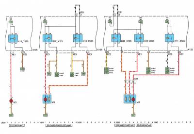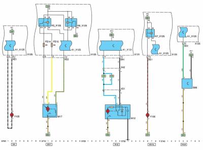 Передние и задний стелоочистители/Датчик дождя/Омыватели фар — электросхема