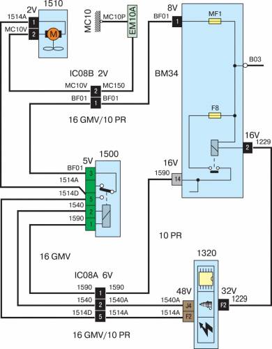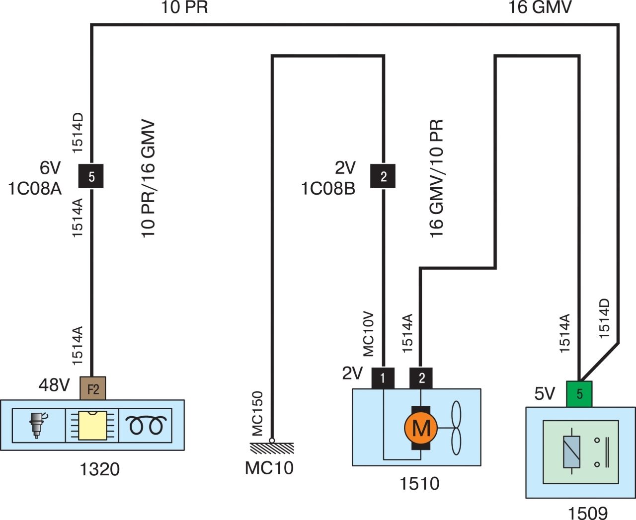 1508 — реле питания малой скорости электродвигателя вентилятора