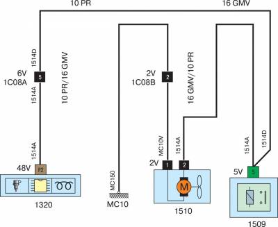 1509 — реле питания большой скорости электродвигателя вентилятора