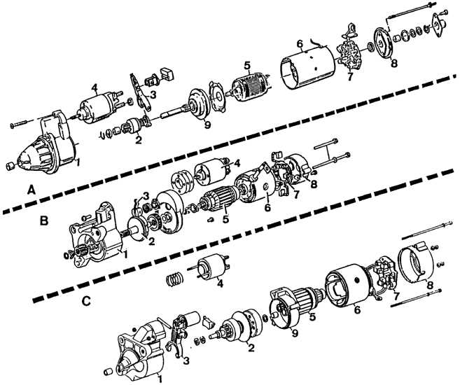 Стартер: А – Bosch, B – Parish-Rhone, C – Mitsubishi