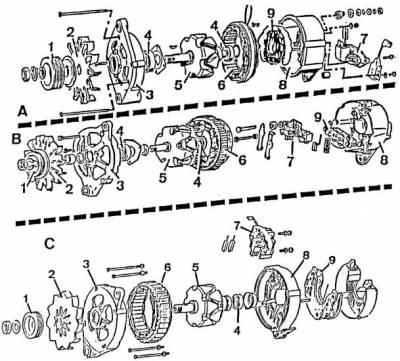 Генератор: А – Bosch, B – Mitsubishi, C – Valeo
