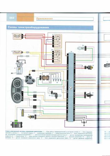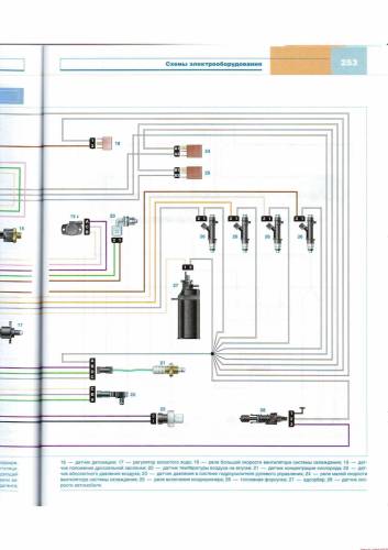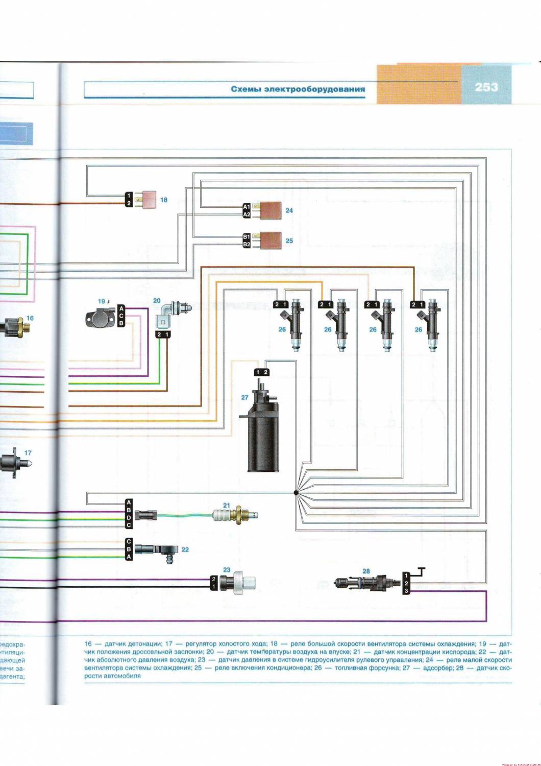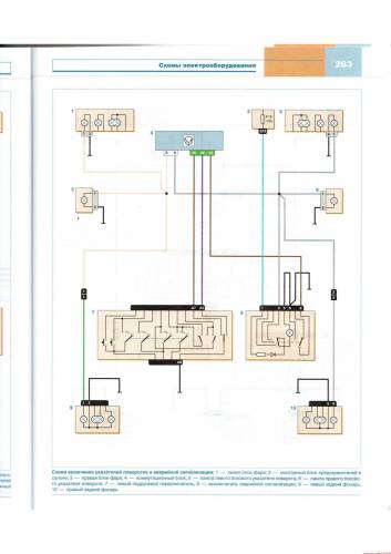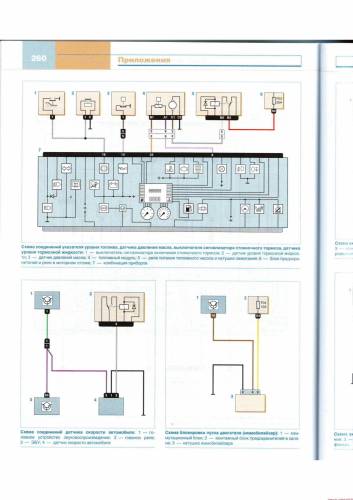 Электросхема соединений указателя уровня топлива, датчика давления масла, выключателя сигнализатора стояночного тормоза, датчика уровня тормозной жидкости, датчика скорости и иммобилайзера