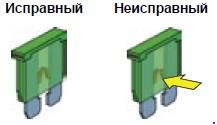 Замените неисправный предохранитель на предохранитель того же тока (того же цвета)