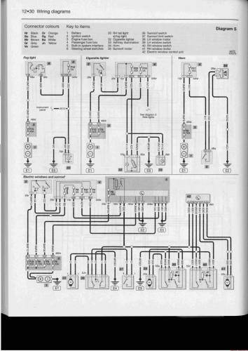 Эл.схема противотуманных фар, прикуривателя, клаксона и стеклоподьемников