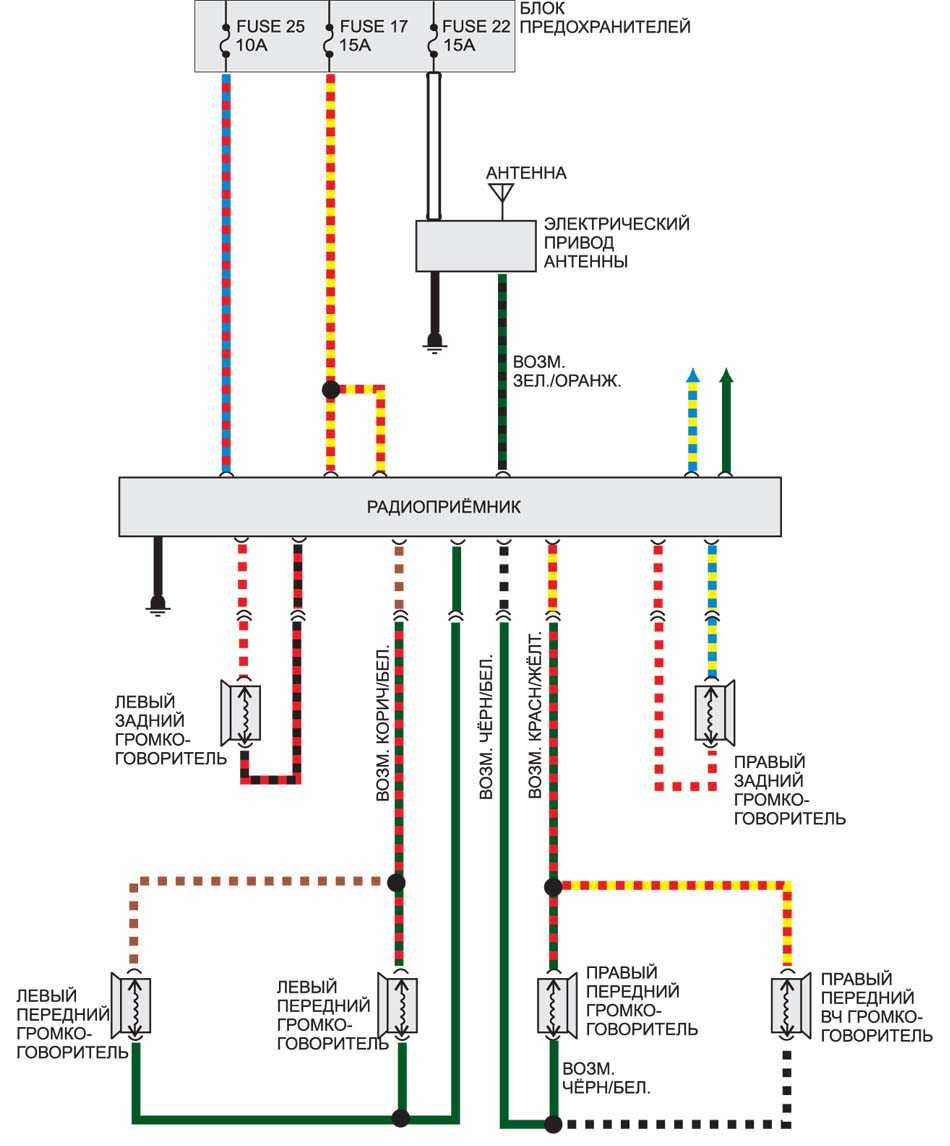 Подсоединение радиоприемника — электросхема