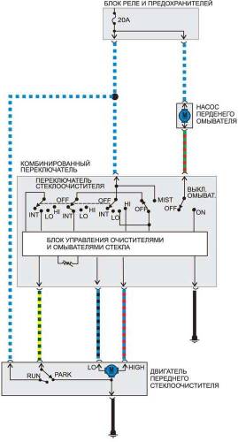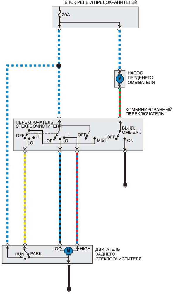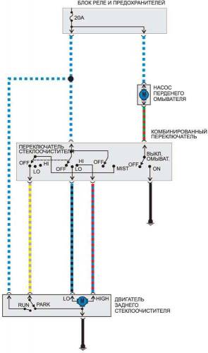 Очиститель и омыватель заднего стекла — эл.схема