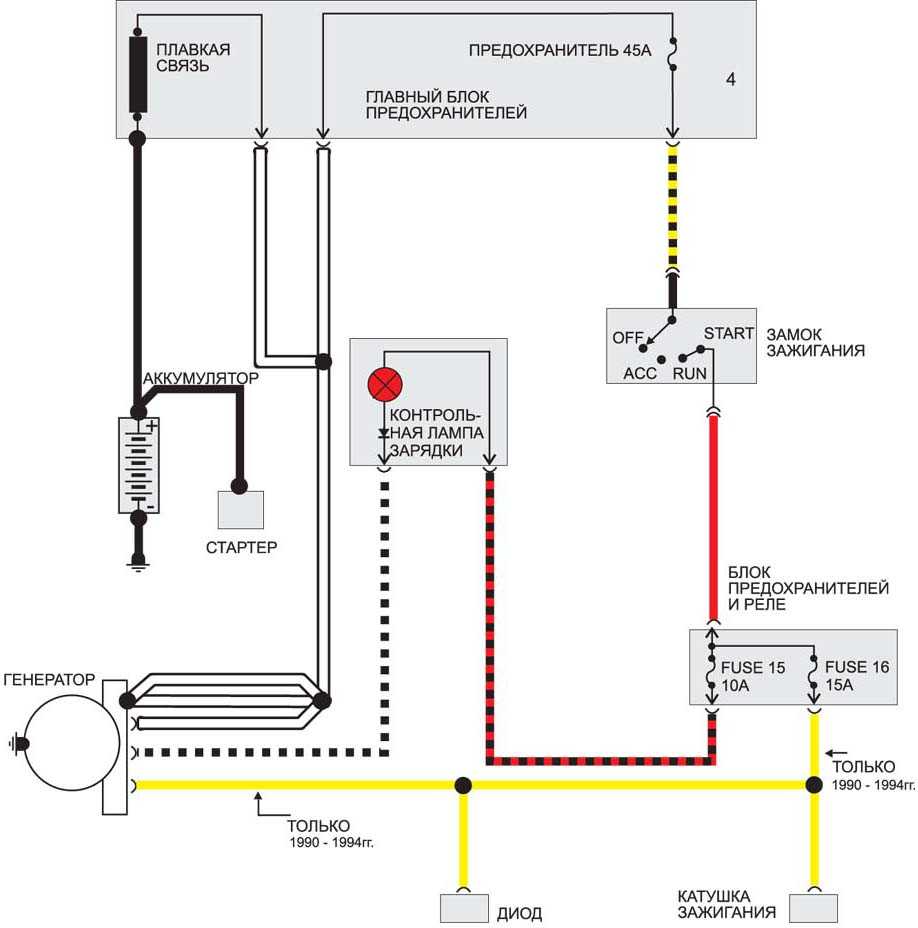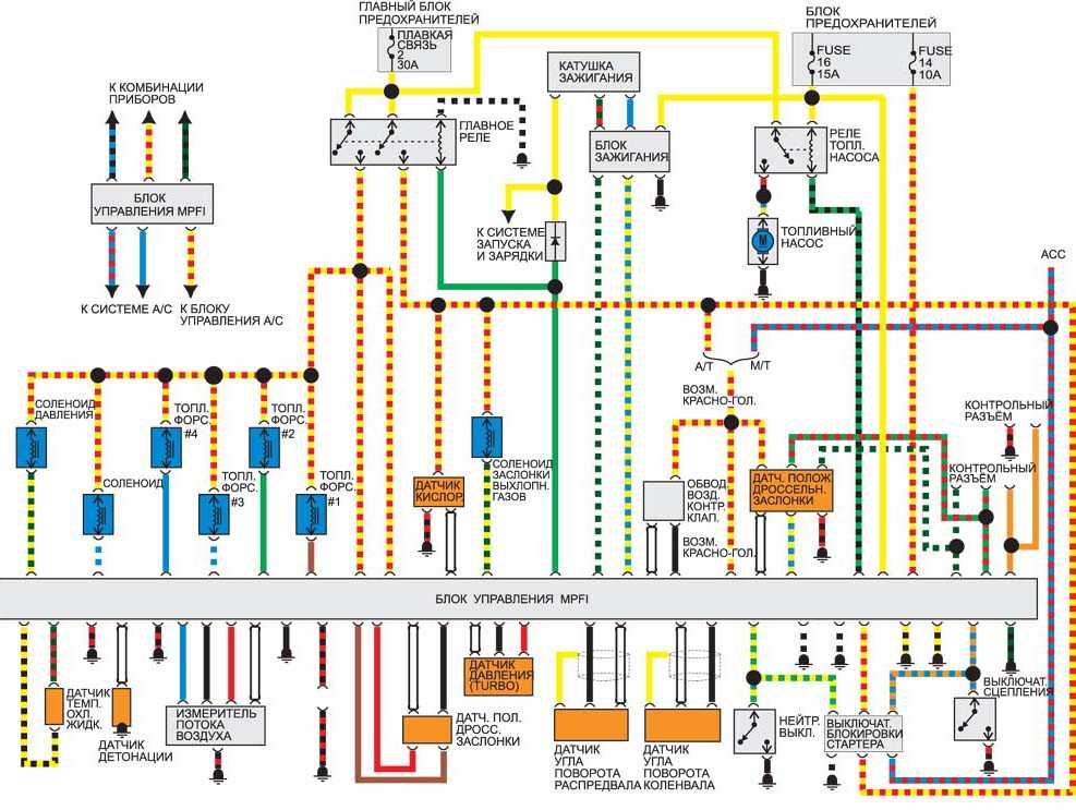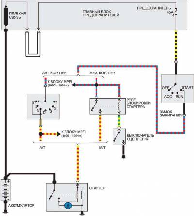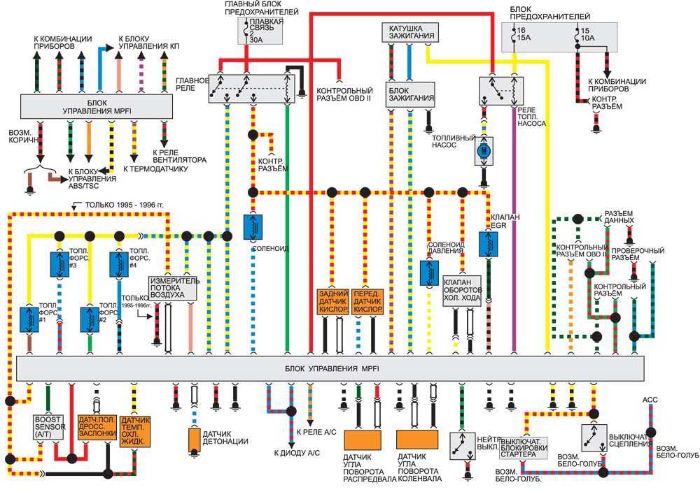 Электросхема управления двигателем 1990-1994 гг. и с 1995 г.