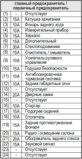 1.Главный предохранитель — расположен в цепи, подключенной непосредственно к аккумулятору.