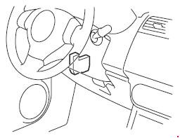 Коробка предохранителей расположена под приборной панелью со стороны водителя. Для снятия крышки коробки предохранителей потяните крышку за обе стороны.