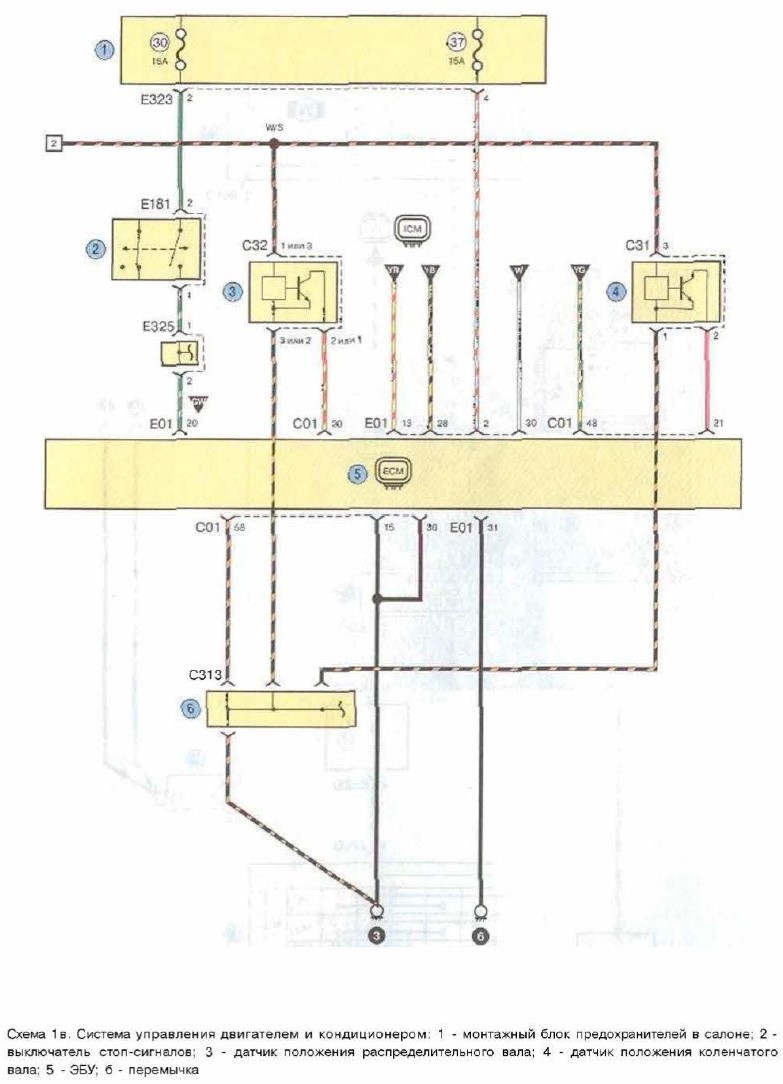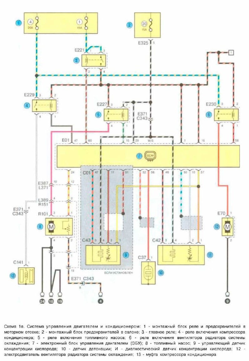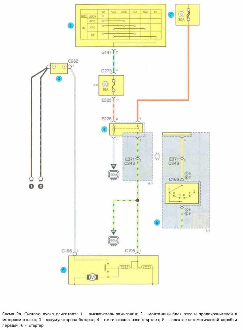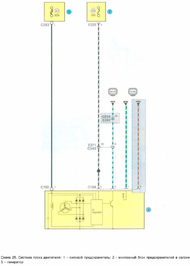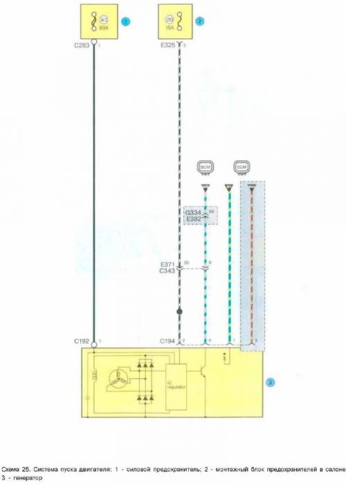 Схема пуска двигателя — силовой предохранитель, монтажный блок предохранителей, генератор