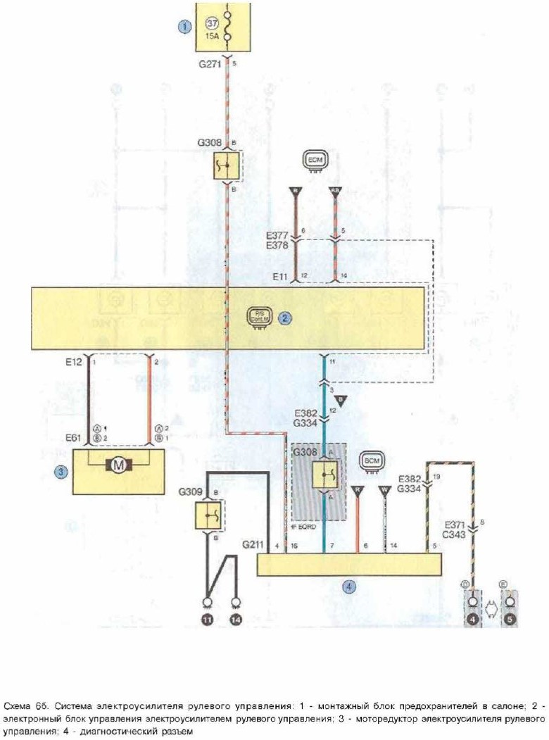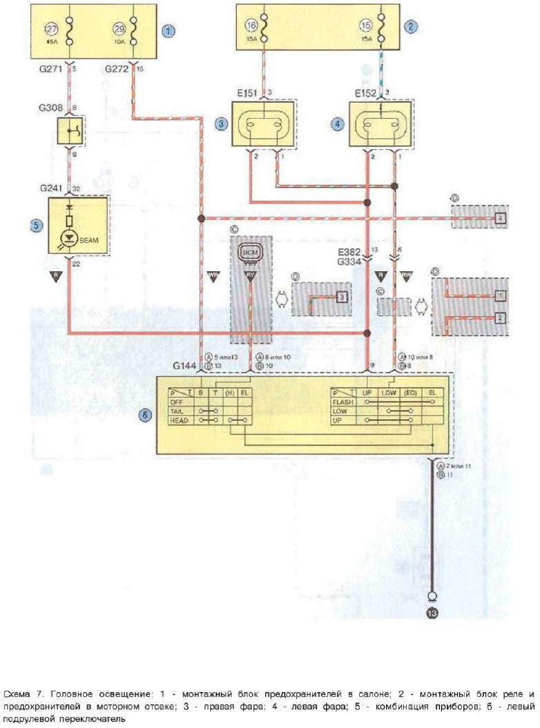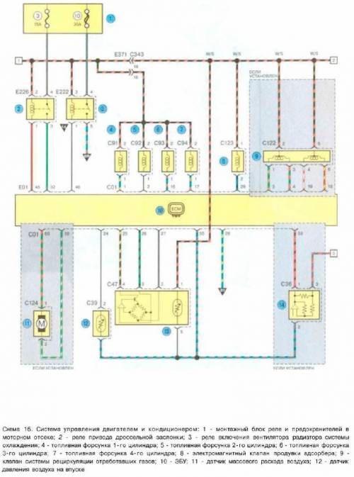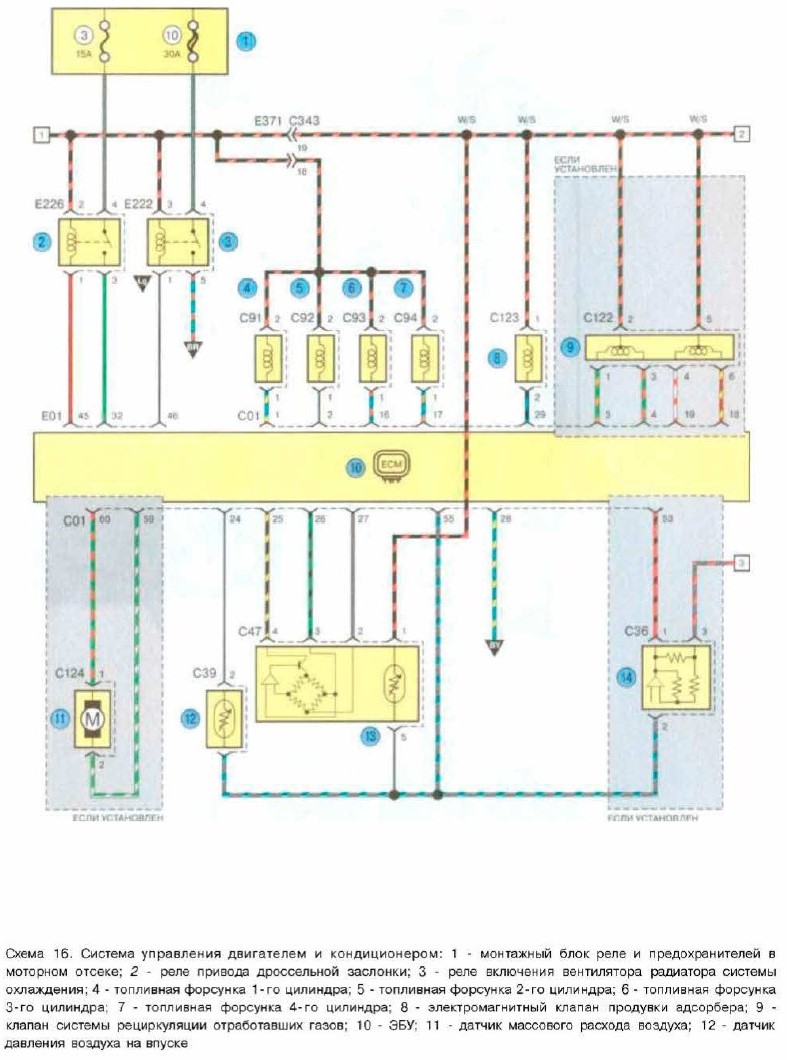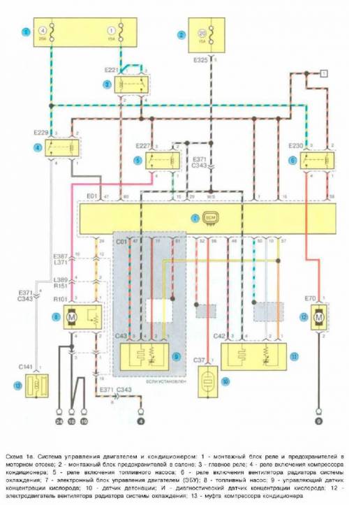 Схема пуска двигателя — силовой предохранитель, монтажный блок предохранителей, генератор
