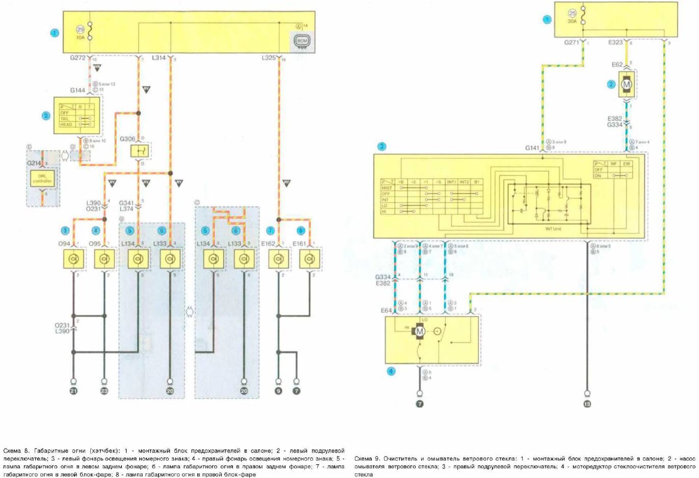 Электрическая схема Suzuki SX4 с 2006 года выпуска. На схеме показаны стеклоомыватель и стеклоочиститель, омыватель фар, корректор фар, обогрев заднего стекла и наружных зеркал заднего вида, регулировка зеркал, ближний и дальний свет фар, фонари заднего хода, передние и задние противотуманные фары, габаритные огни и огни освещения номерного знака, стоп-сигналы, указатели поворотов и аварийная сигнализация, охранная сигнализация и другие системы электронного оборудования данного автомобиля.