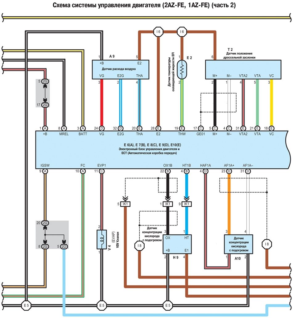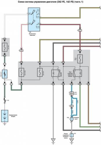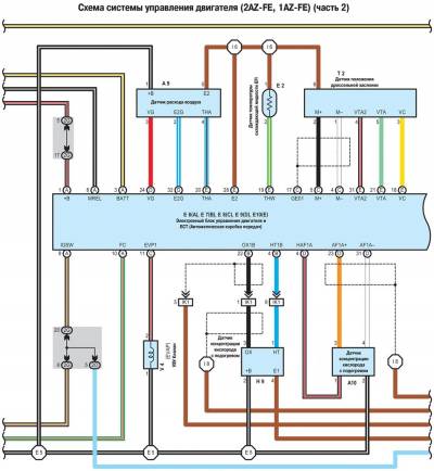 Электросхема системы управления двигателем — 2AZ-FE и 1AZ-FE на Тойота Камри