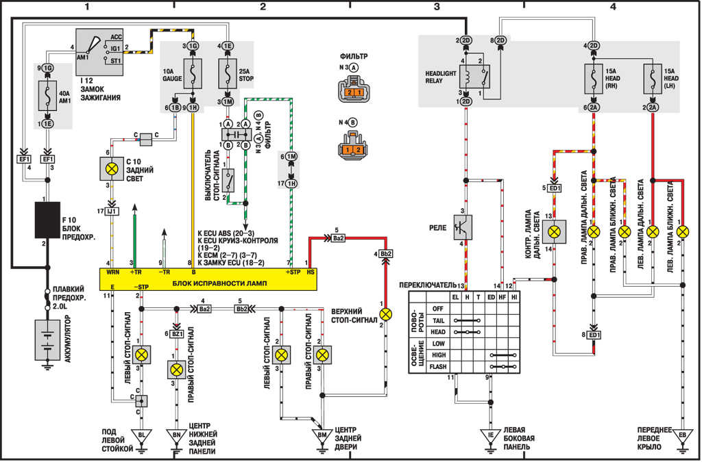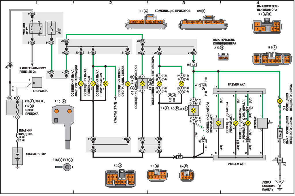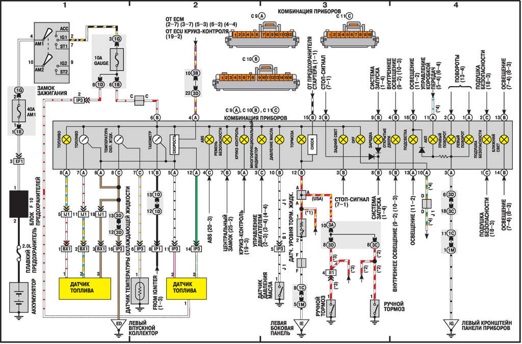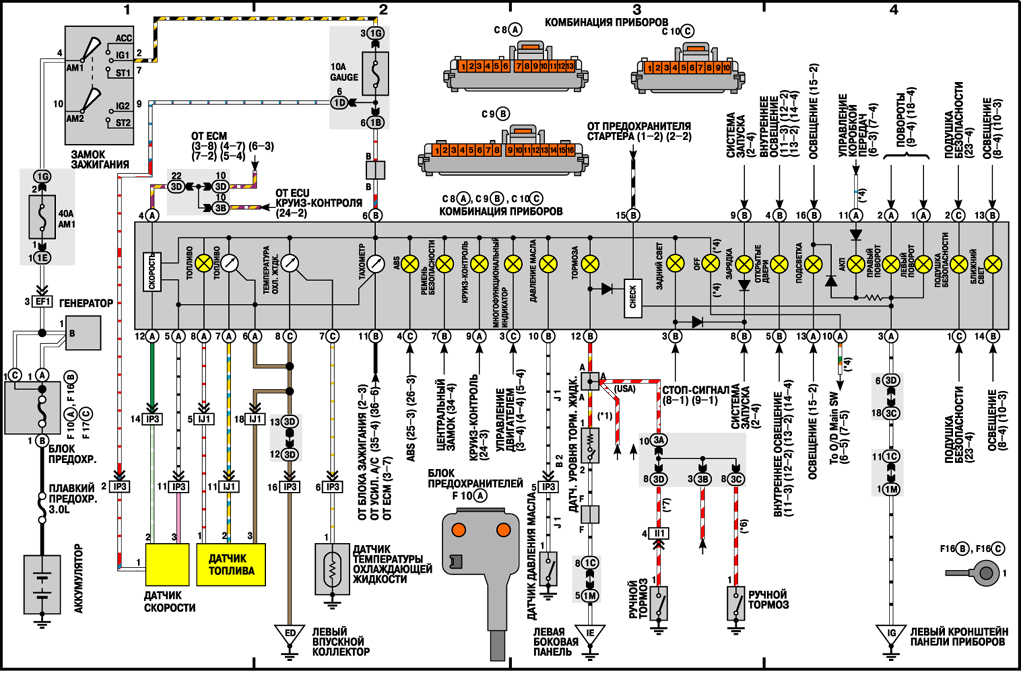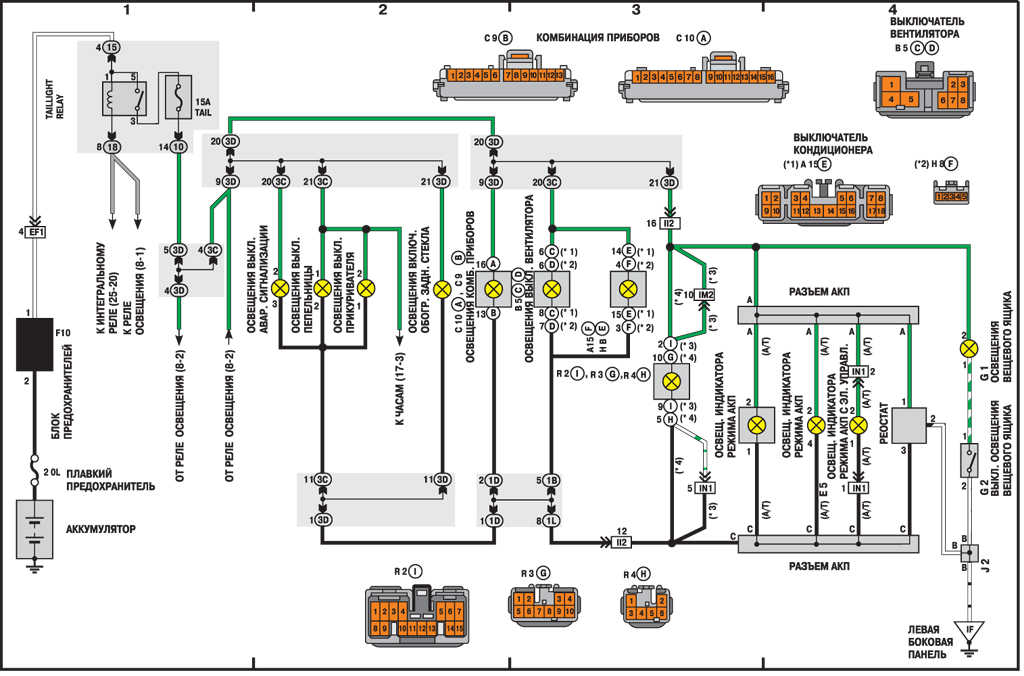 Электросхема круиз-контроля и обогревателя заднего стекла на Toyota Camry
