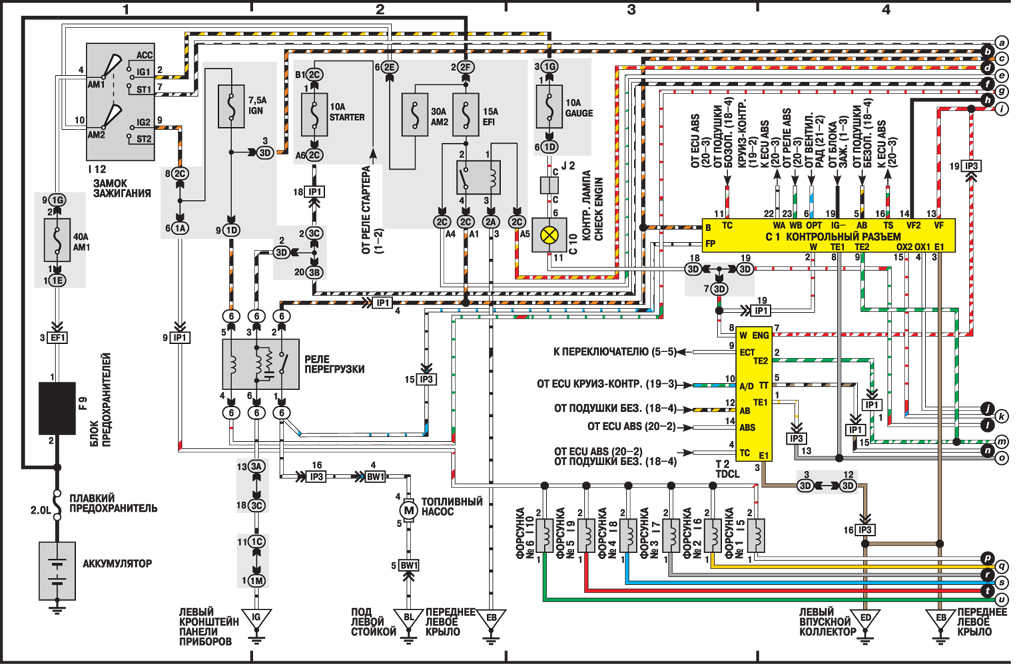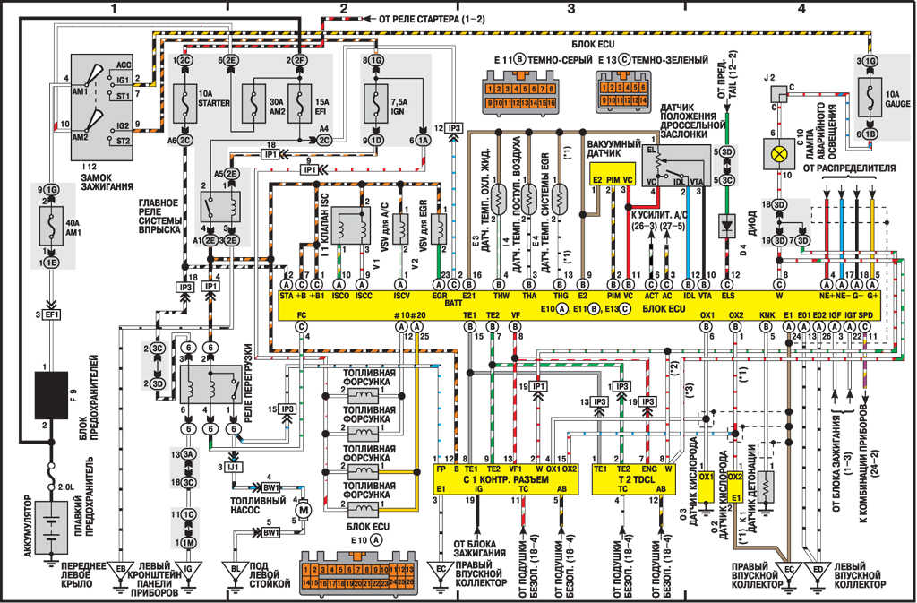Электросхема управления двигателем 5S-FE, 3VZ-FE
