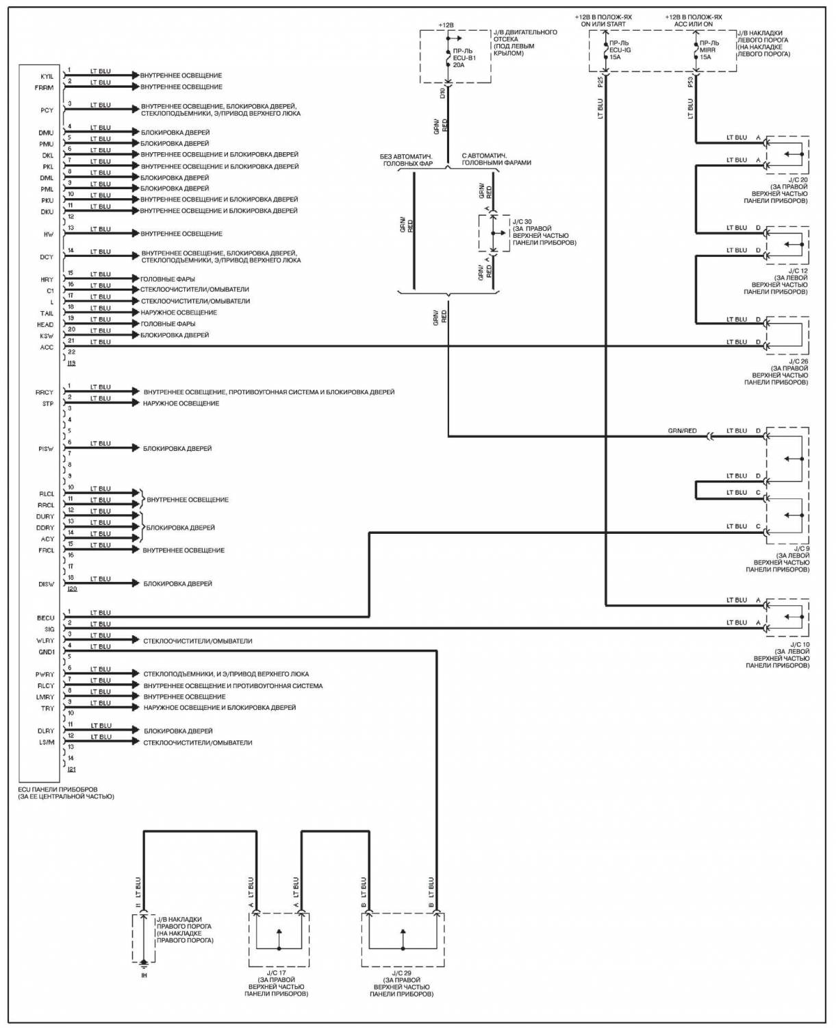 Передний К/В, без системы навигации — электросхема