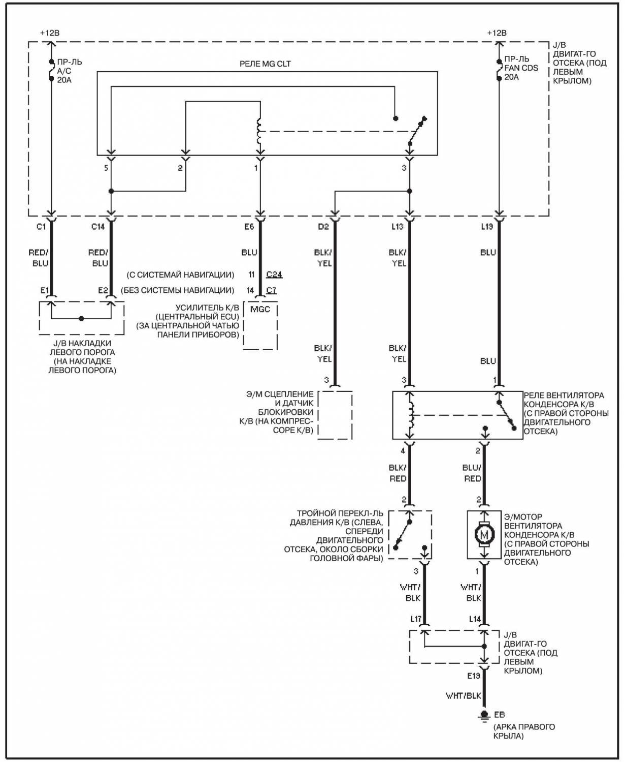 Передний К/В, с системой навигации — электросхема