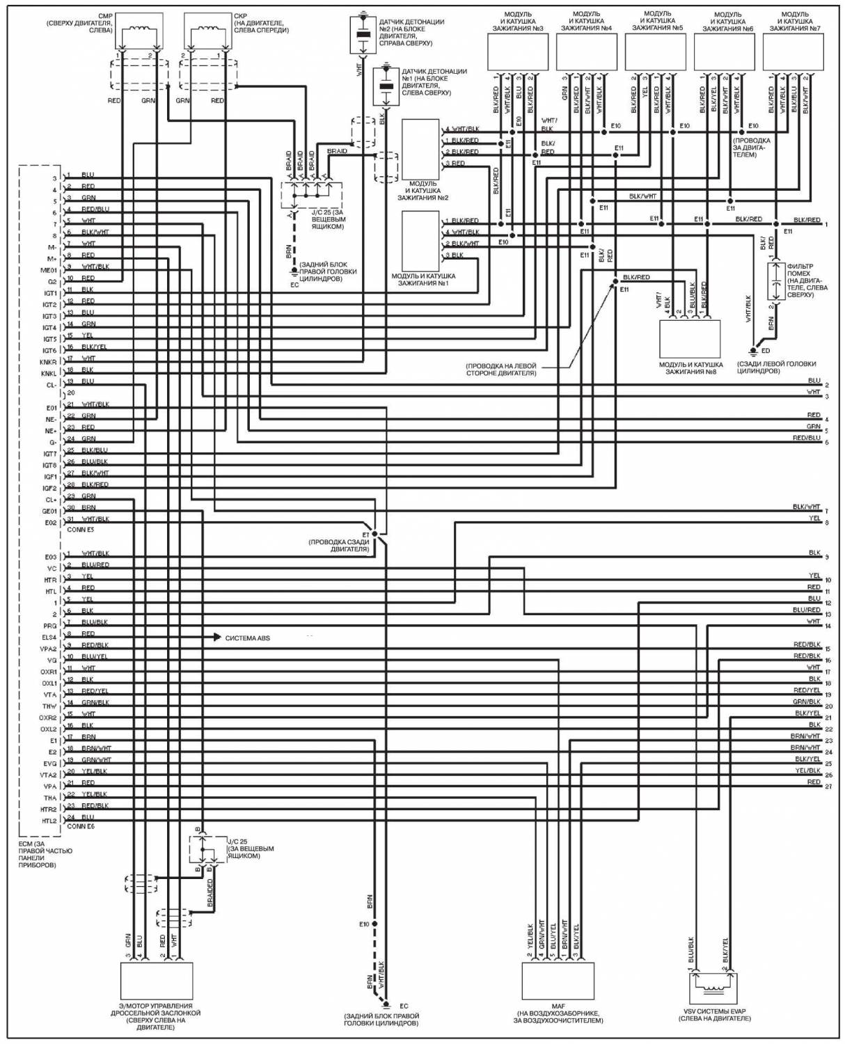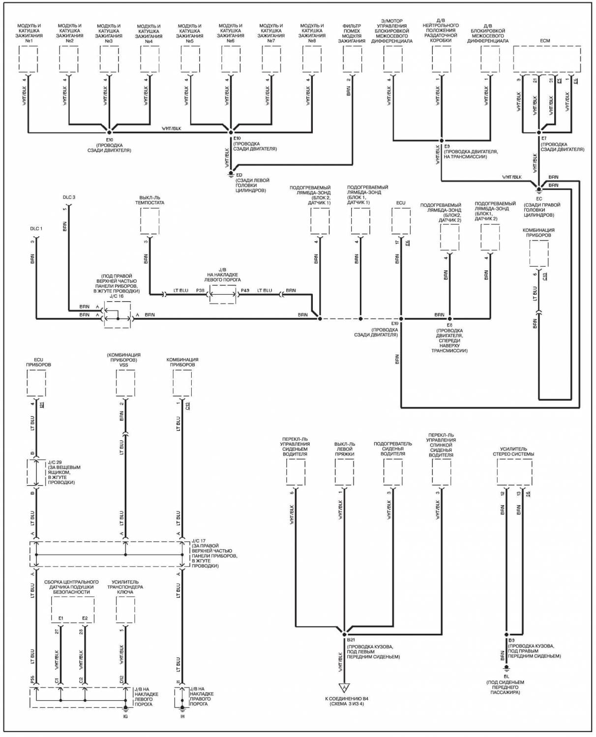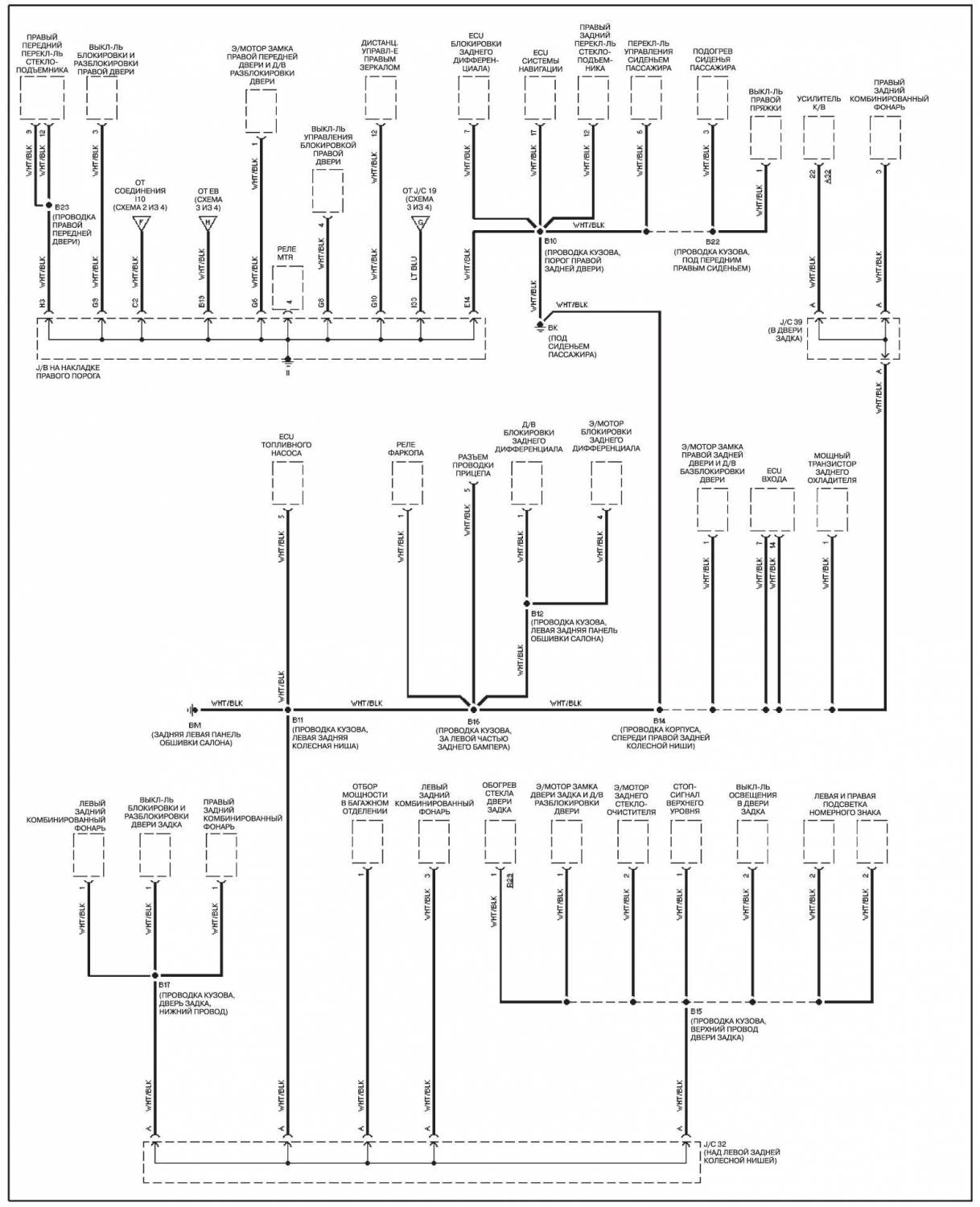 Схема распределения заземления на Тойота Ленд Крузер 100