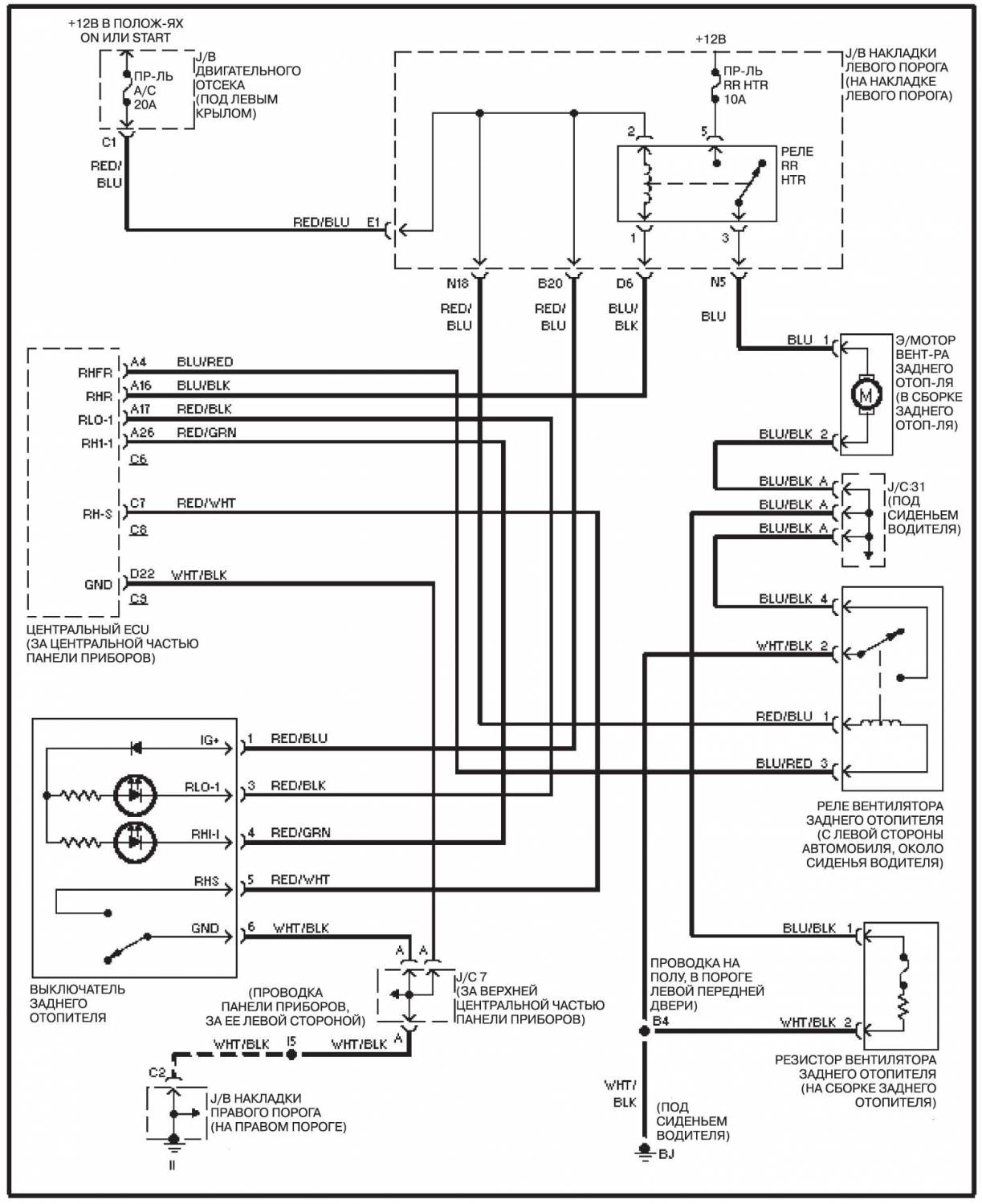 Задний отопитель, без системы навигации — схема