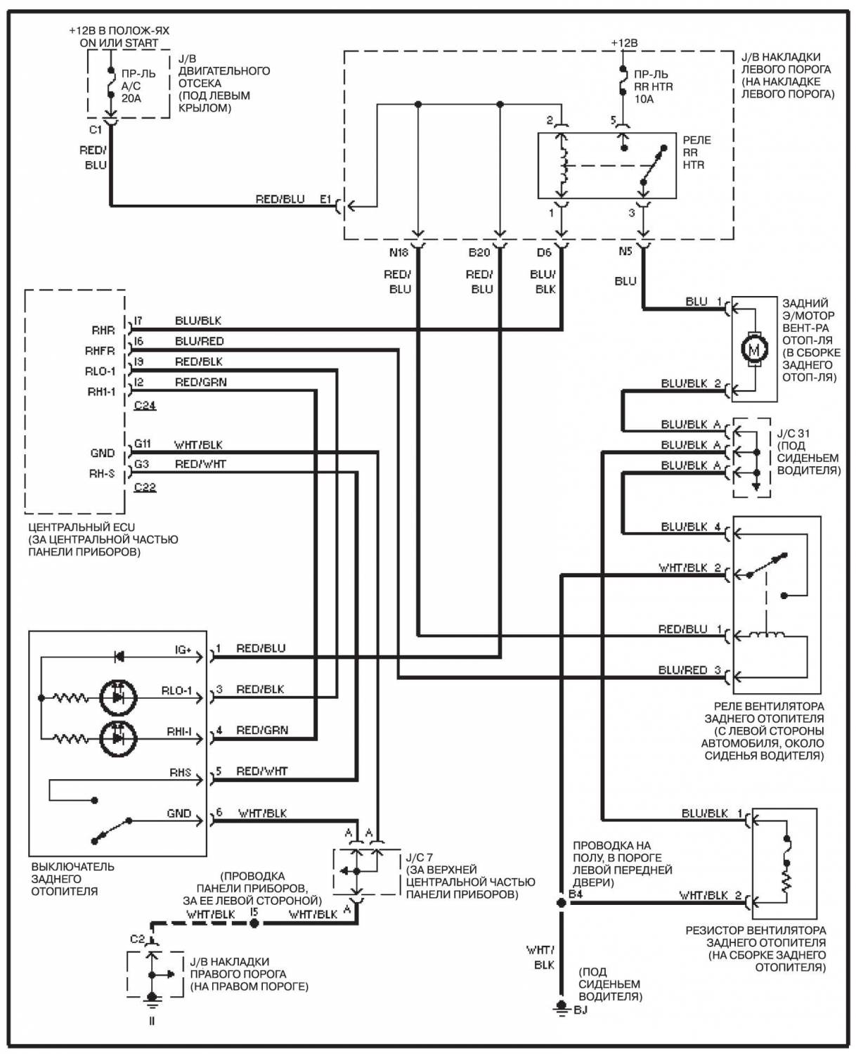 Задний отопитель, с системой навигации — эл.схема