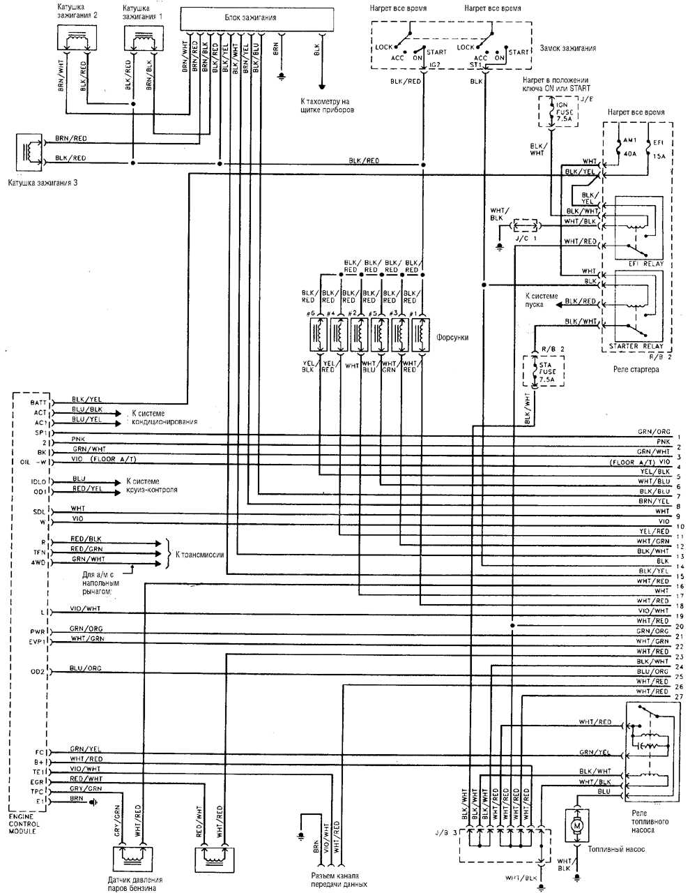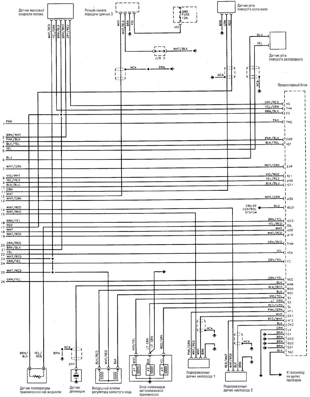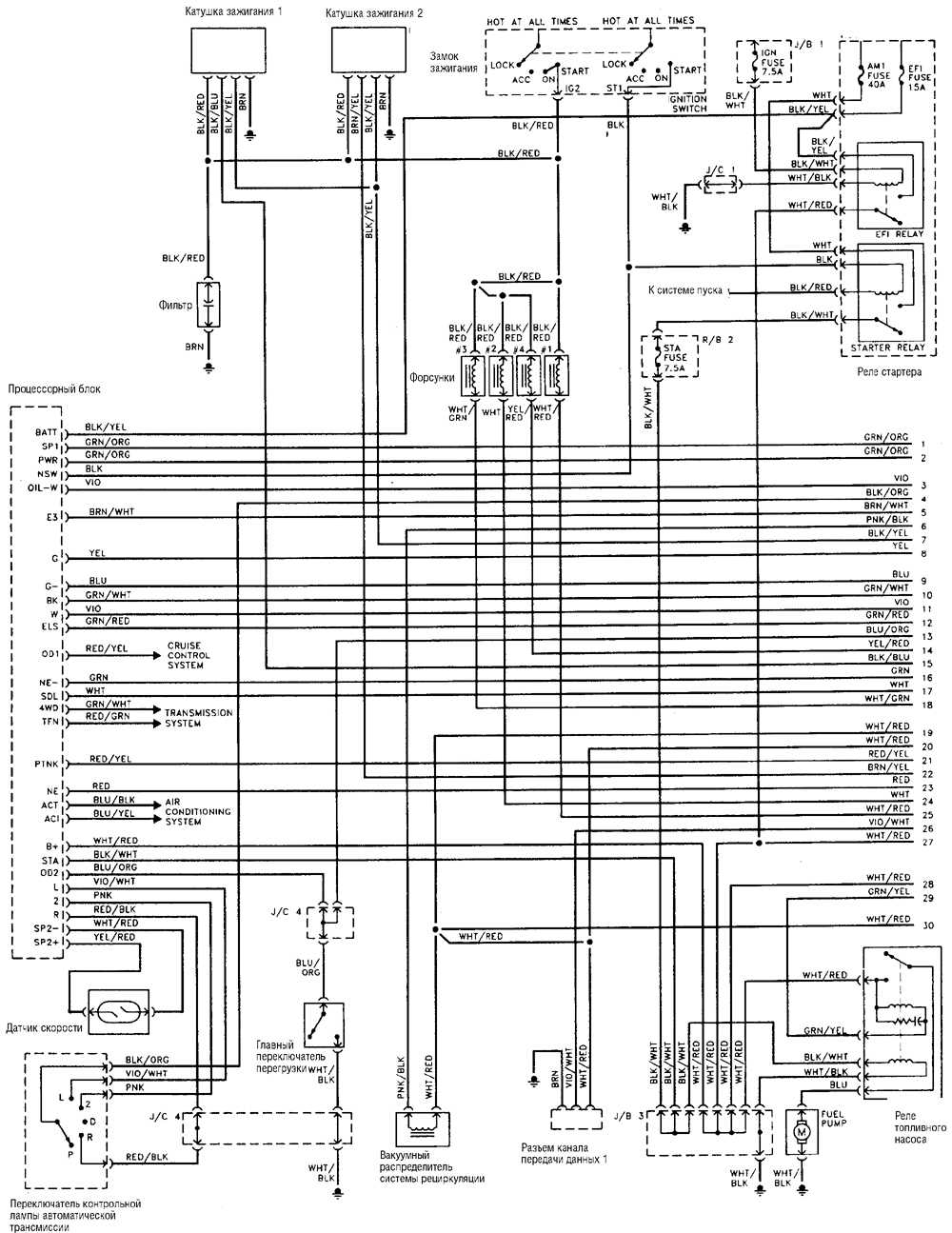 Электросхема электрооборудования 4-цилиндрового двигателя на Тойота 4 раннер