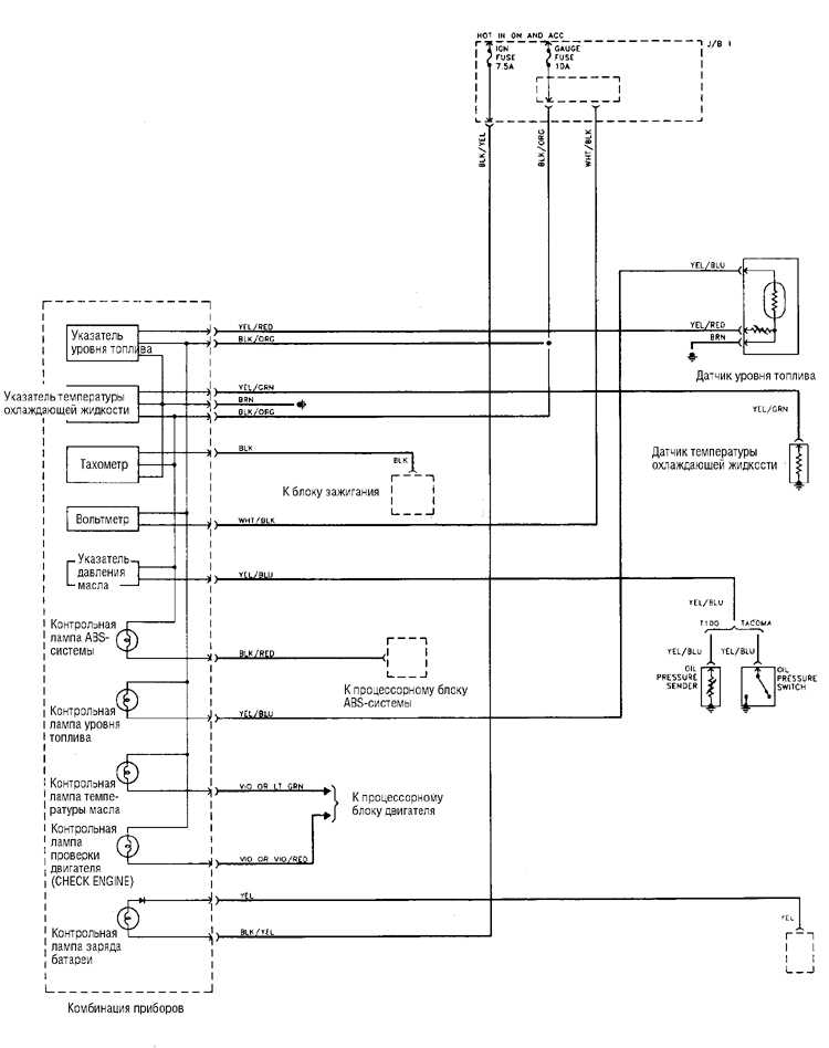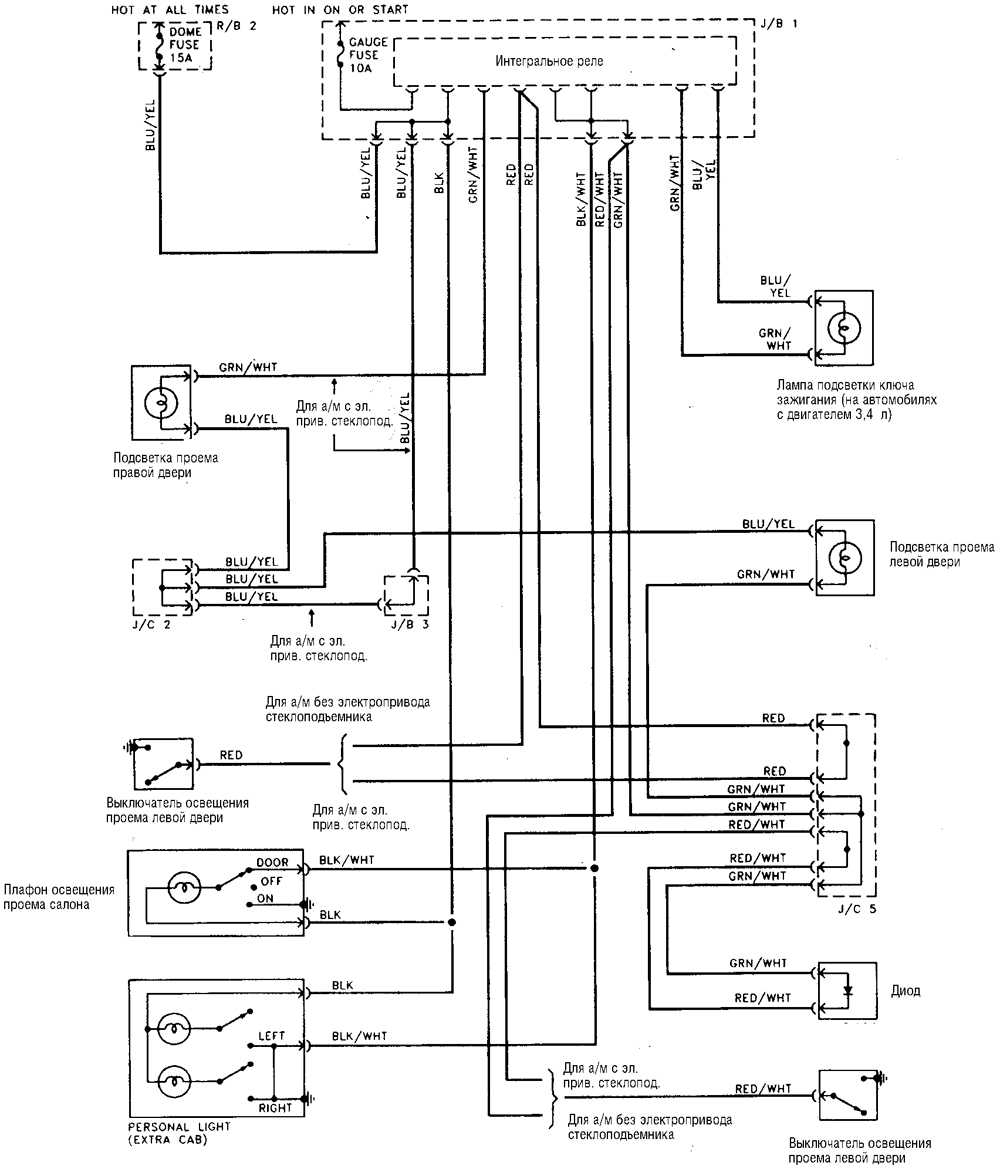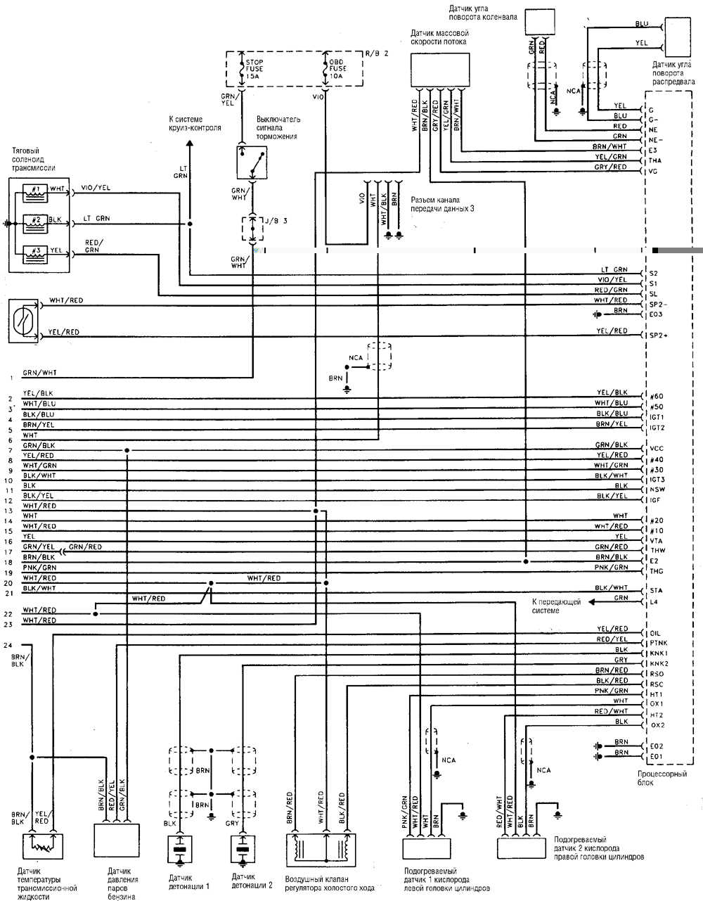 Электросхема электрооборудования 4-цилиндрового двигателя на Тойота 4 раннер