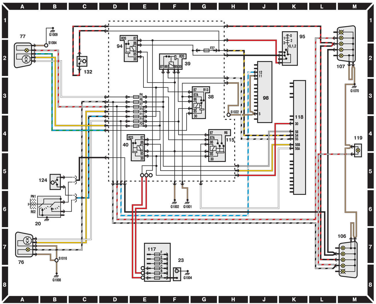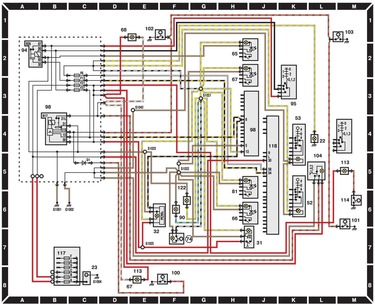 Схема внешнего освещения, лампы габаритного света, торможения и заднего хода