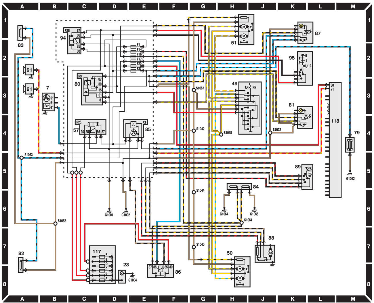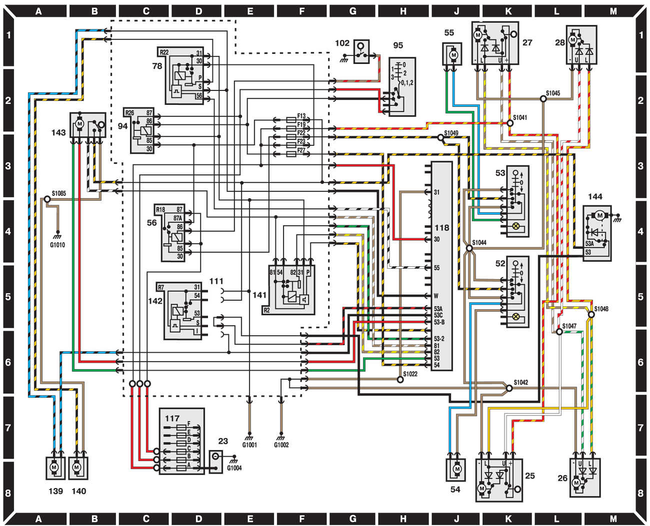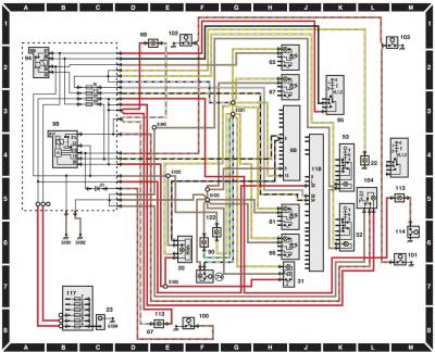 Центральный замок, стеклоподъемники, омыватели стекол и фар-эл.схема