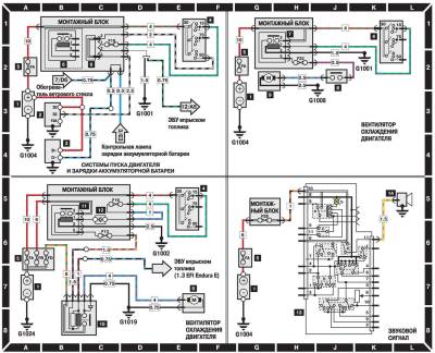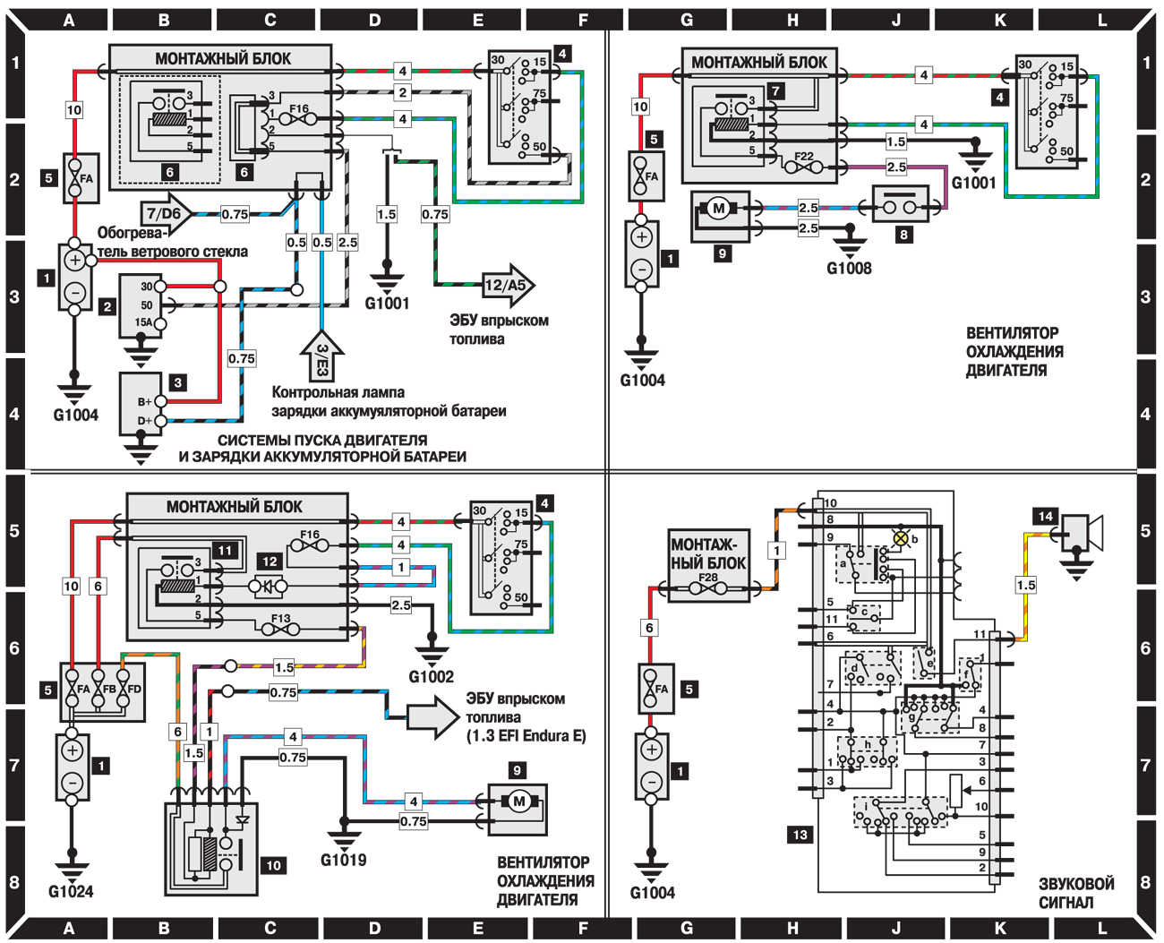 Схема системы пуска, аккумуляторной батареи, вентилятора, звукового сигнала