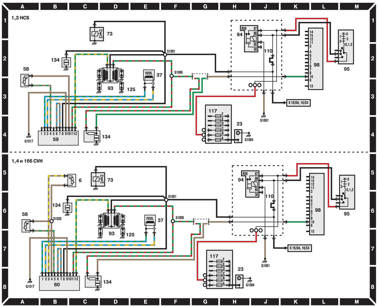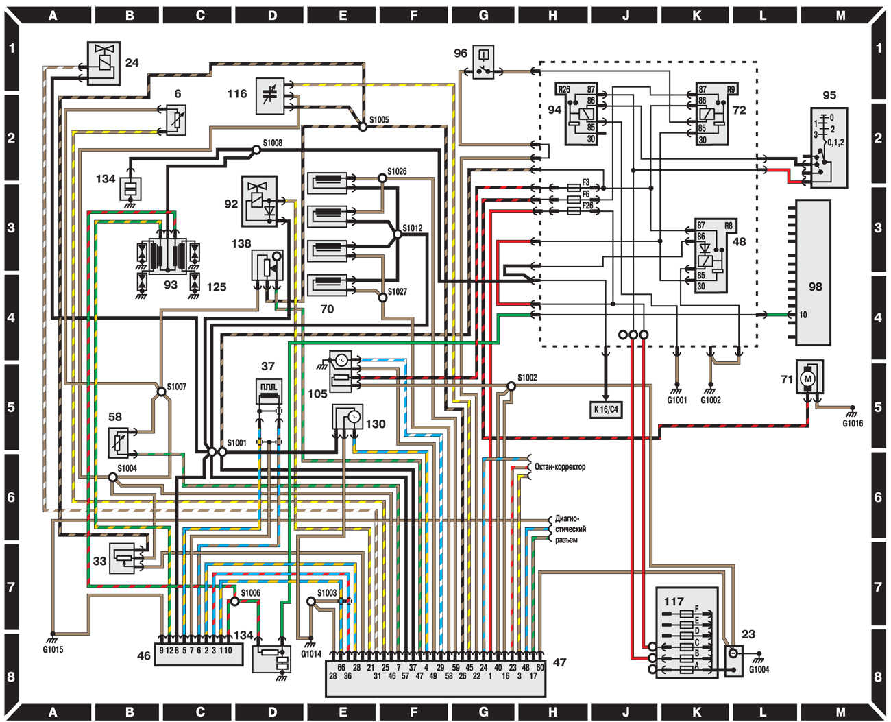 72 – реле топливного насоса; 92 – электромагнитный клапан системы холостого хода;