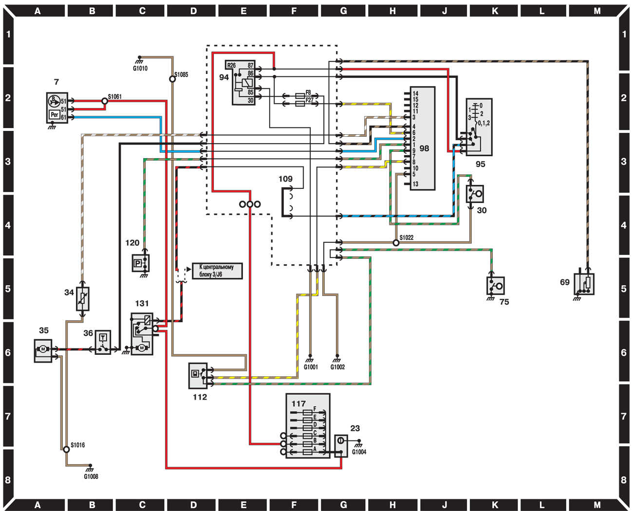 Эл.схема звукового сигнала, обогревателя стекол, электропривода зеркал
