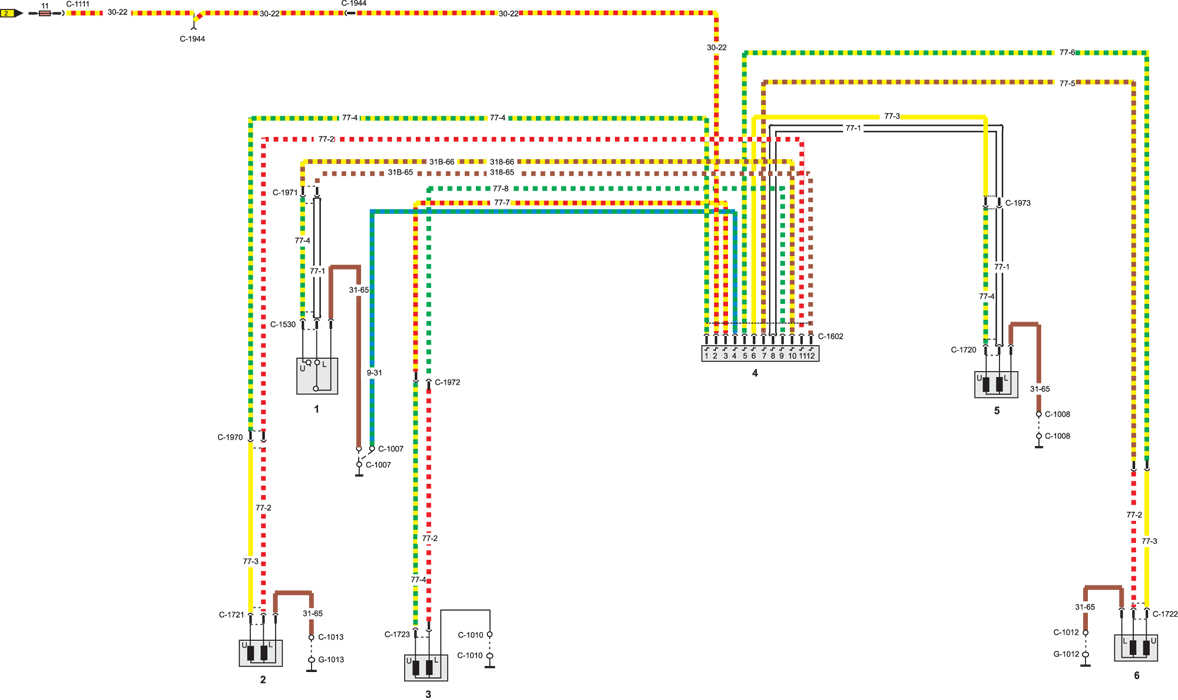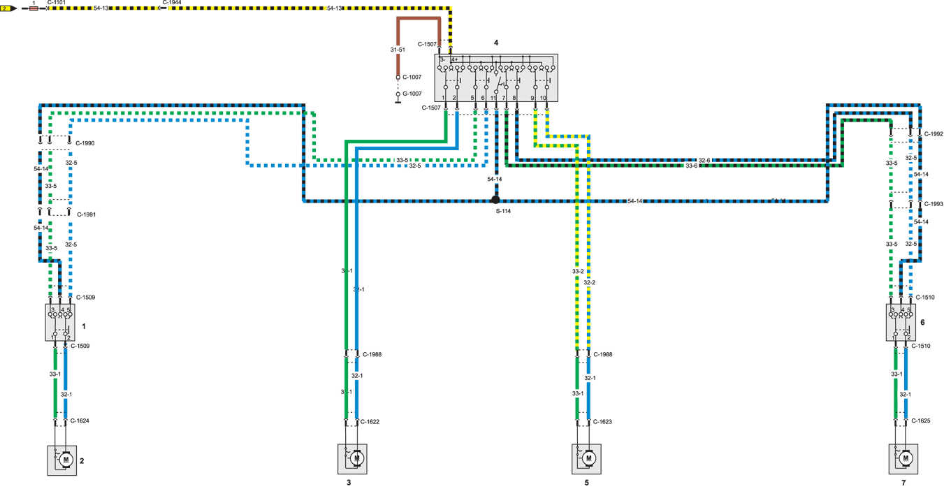 Схема электрического контура управления стеклами боковых дверей на Форд Сиерра