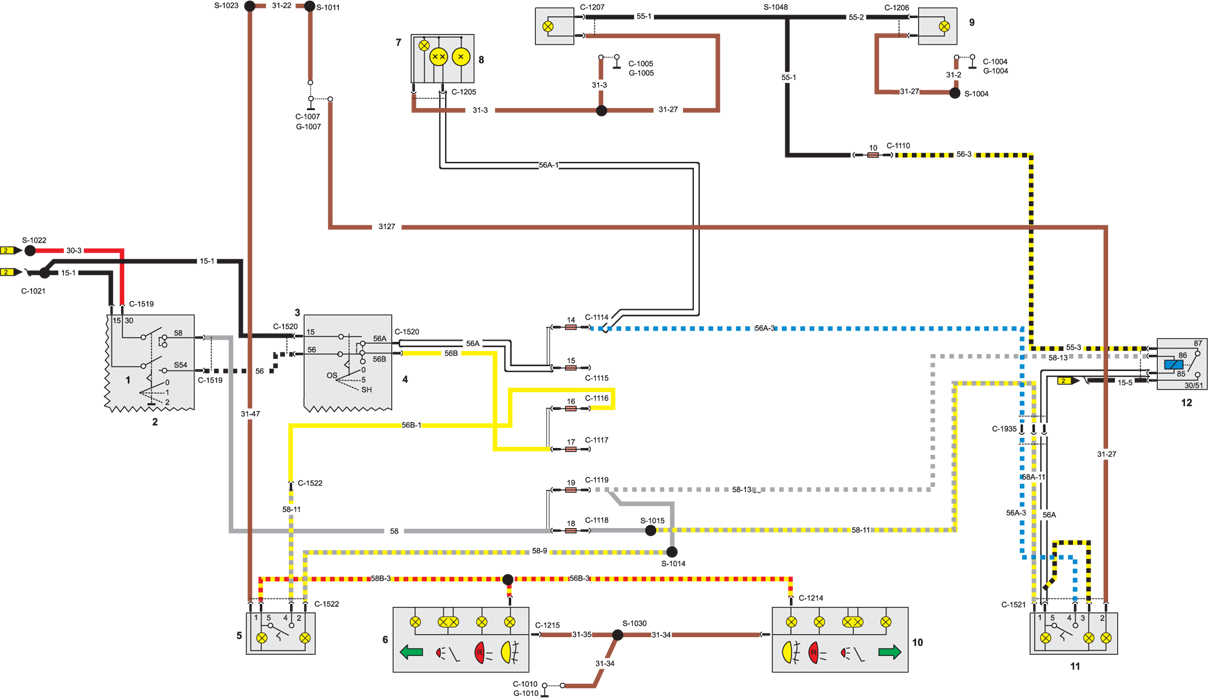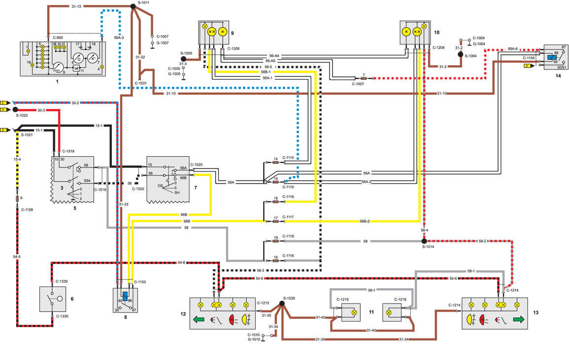 15 – освещение комбинации приборов с регулировкой интенсивности,