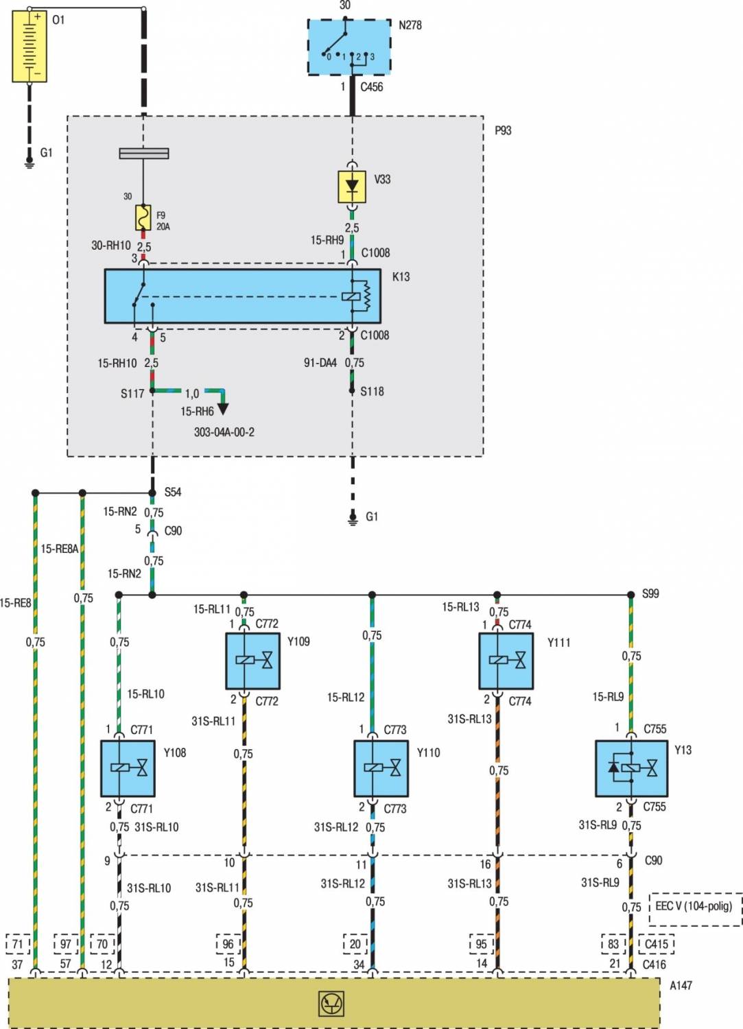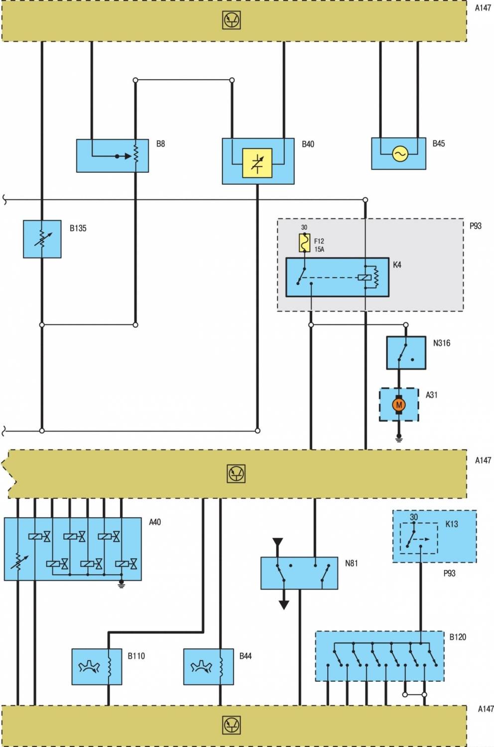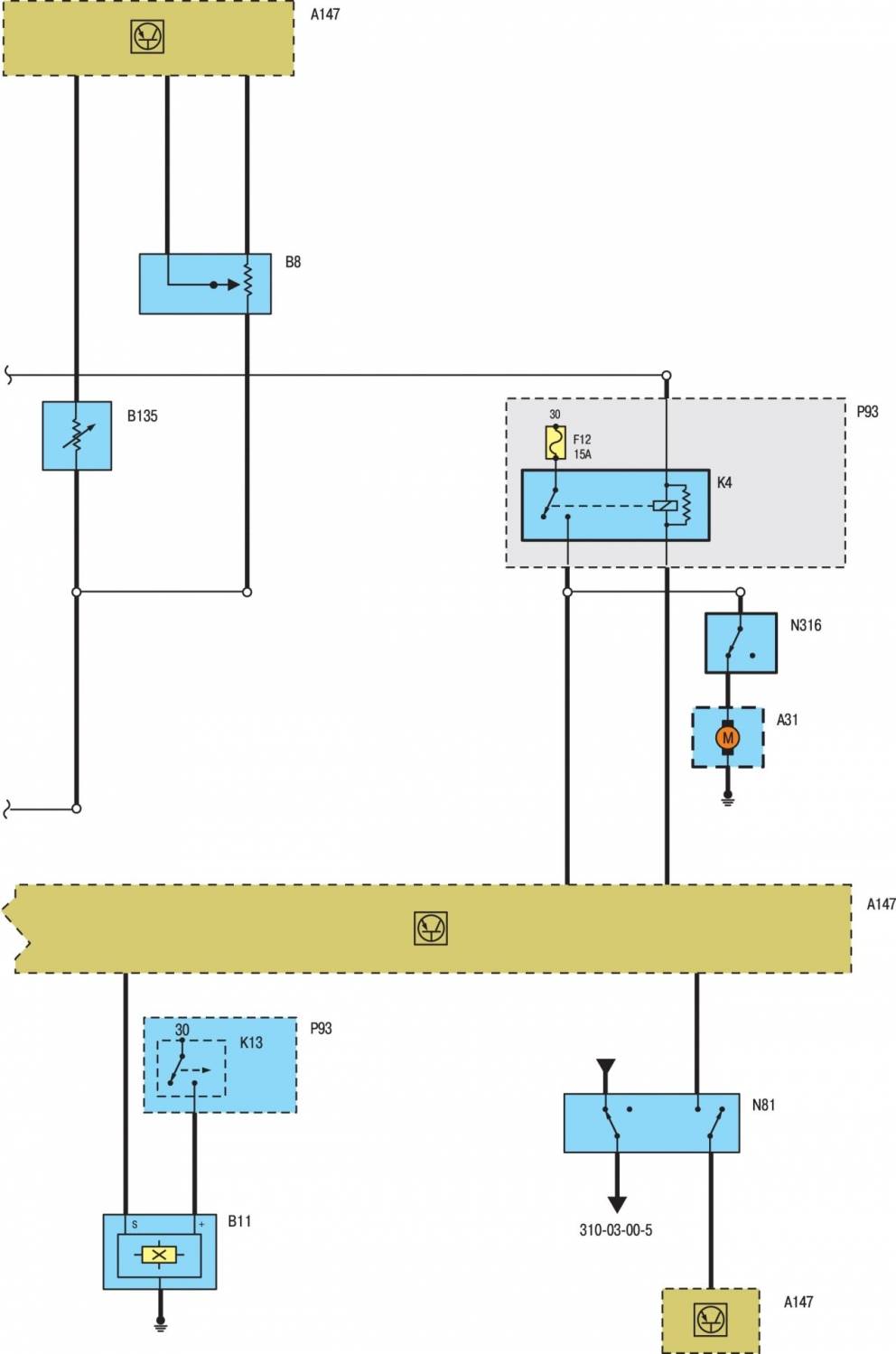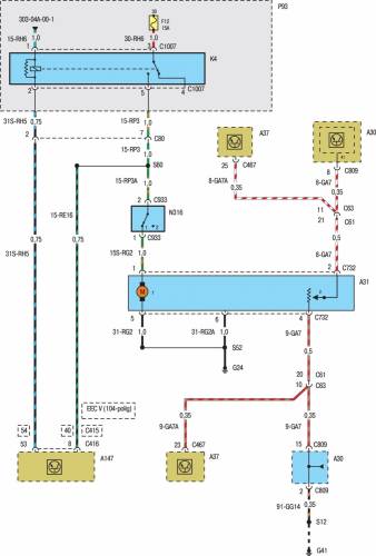 K46 — реле вентилятора системы охлаждения двигателя (высокая частота вращения)