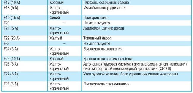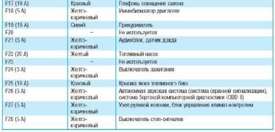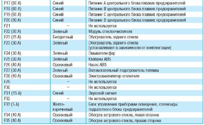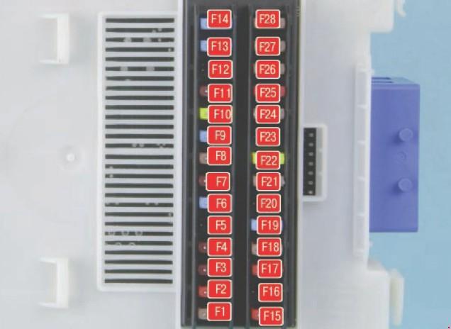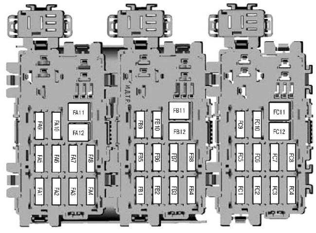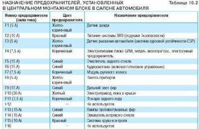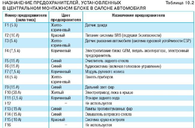 Предохранители в центральном монтажном блоке, расположенном в салоне