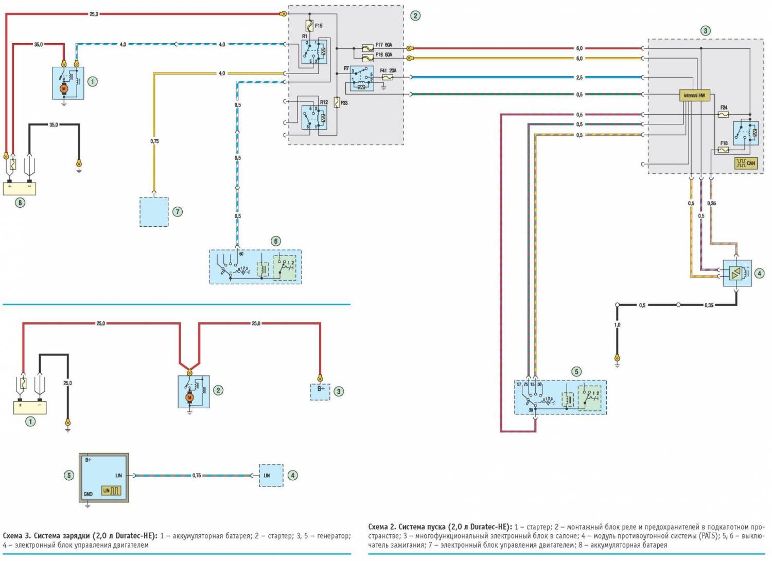 Цветные схемы высококачественные электрооборудования Форд Мондео с 2007 г. В данном материале показана электросхема легкового автомобиля FORD MONDEO. Система управление двигателями, запуск двигателя и зарядка аккумуляторной батареи, система охлаждения двигателей, диагностический разъем, центральный замок, привод стеклоподъемников, фонари заднего хода, передние и задние противотуманные фары, габаритные огни и огни освещения номерного знака, указатели поворотов и аварийная сигнализация, а также остальные системы и электропроводка для соединения всех этих узлов.