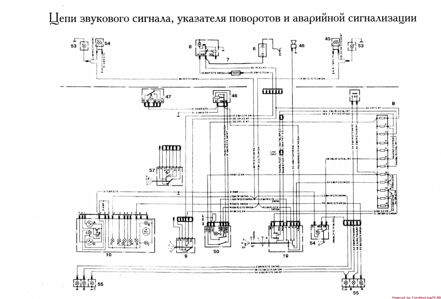 Звуковой сигнал, указатель поворотов и аварийная сигнализация — схема на Ford Granada