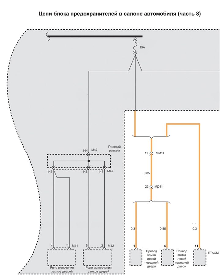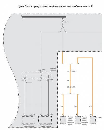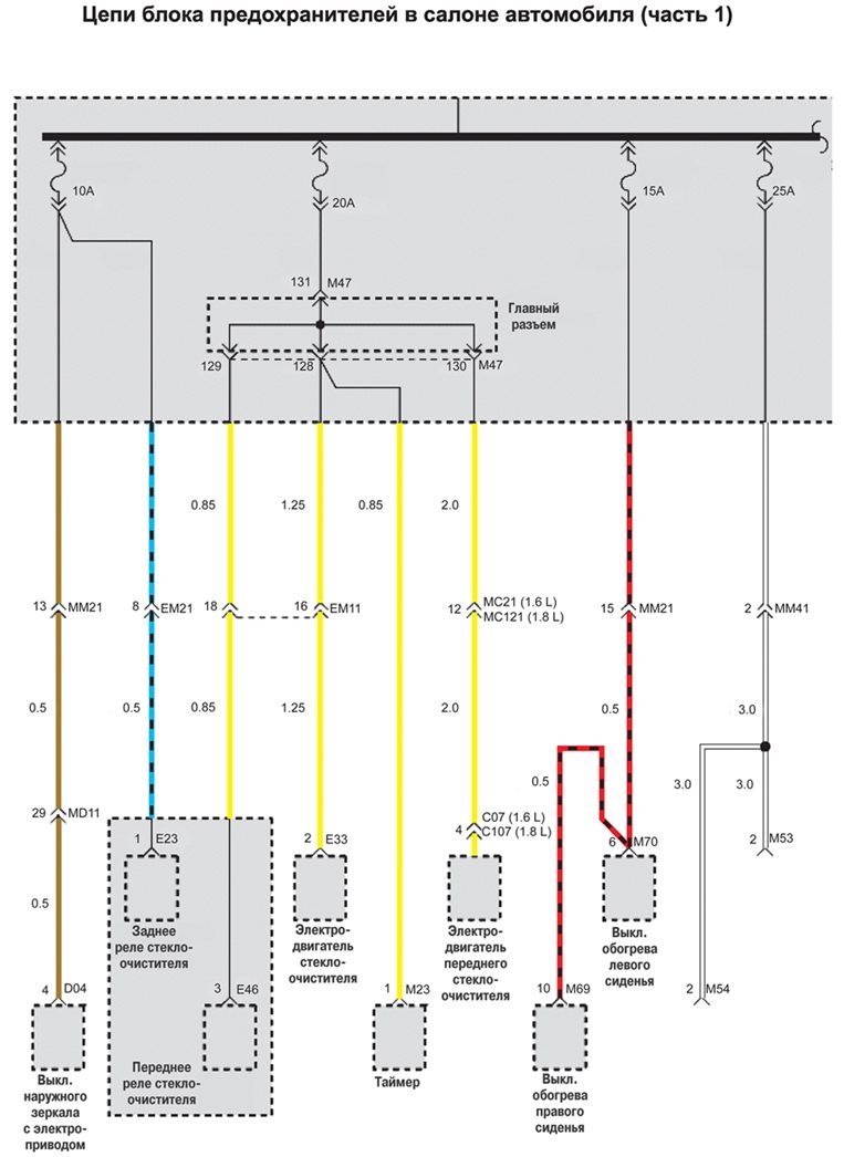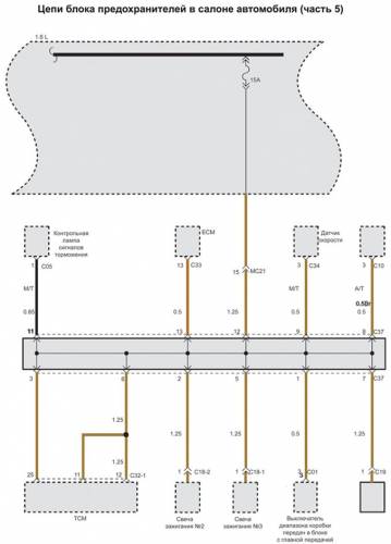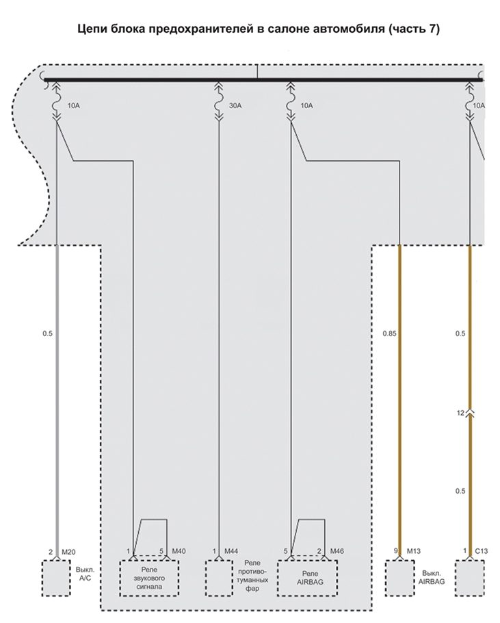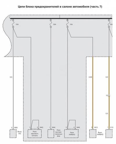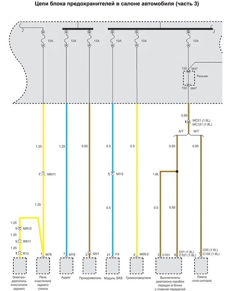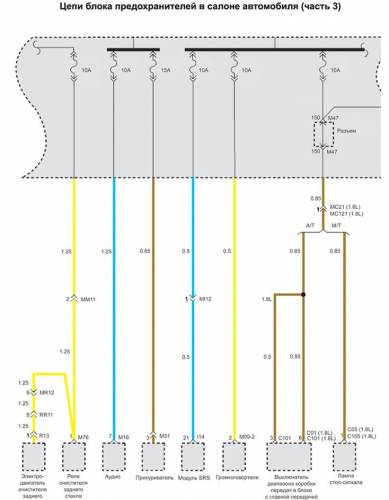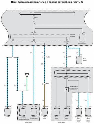 Схема цепи блока предохранителей в салоне автомобиля на Хендай Матрикс