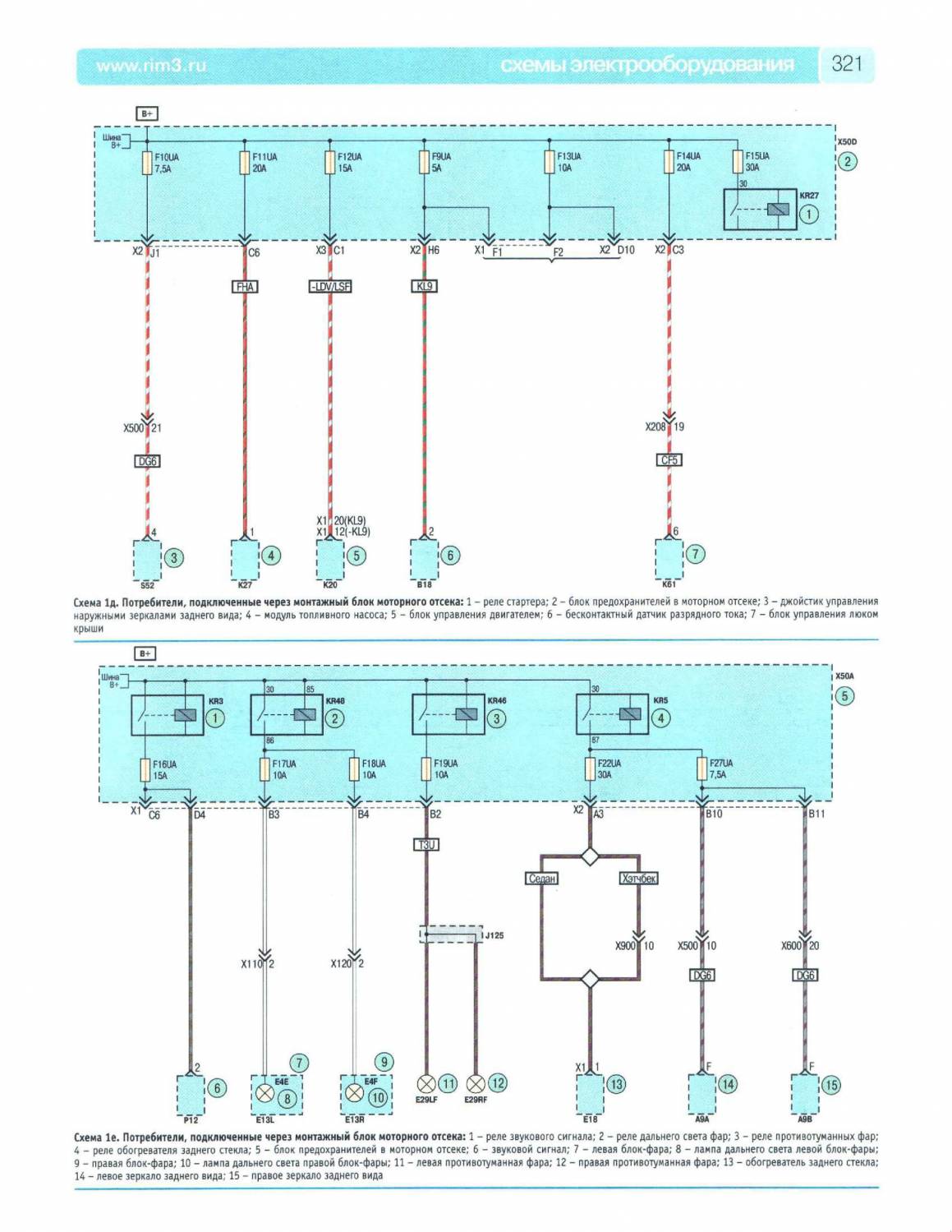 Схема потребителей, подключенных через монтажный блок моторного отсека