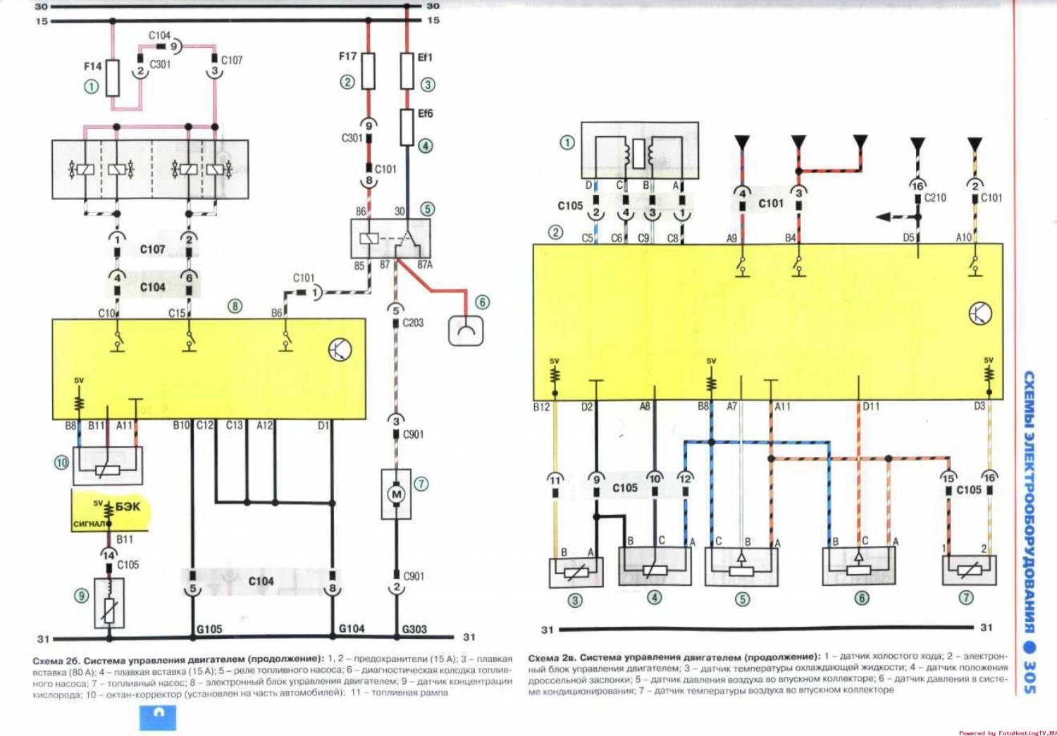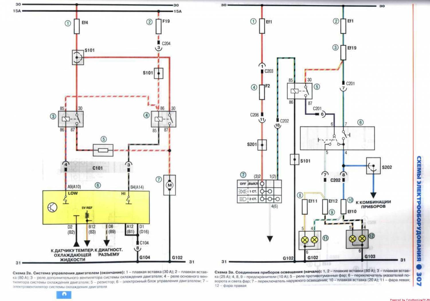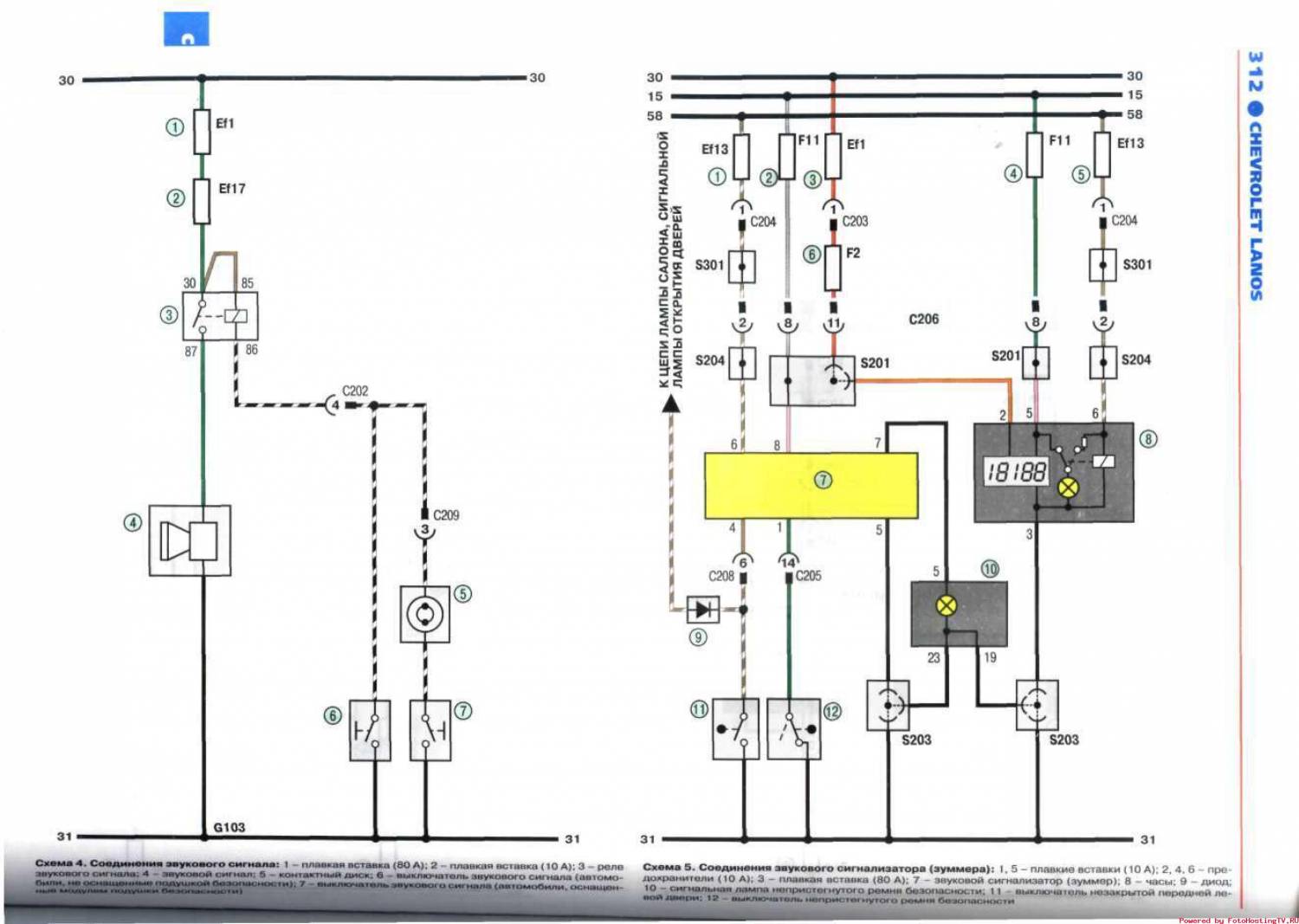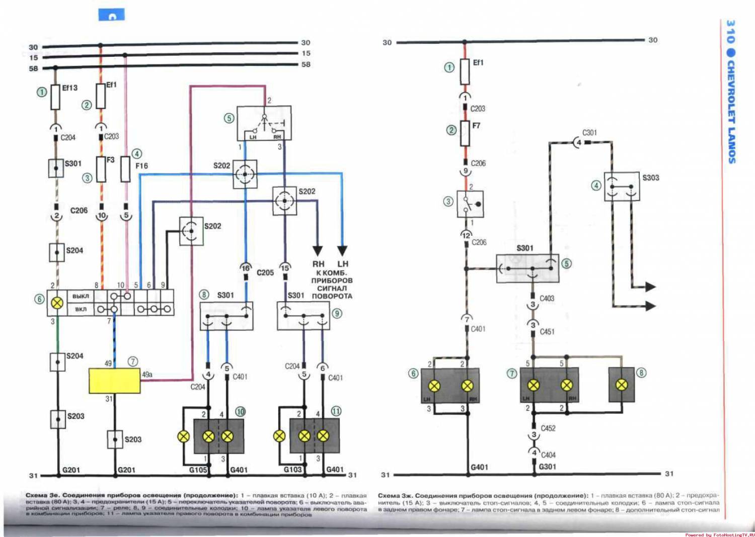 Схема генераторной установки, пуска двигателя, управления двигателем и соединения приборов освещения на Шевроле Ланос