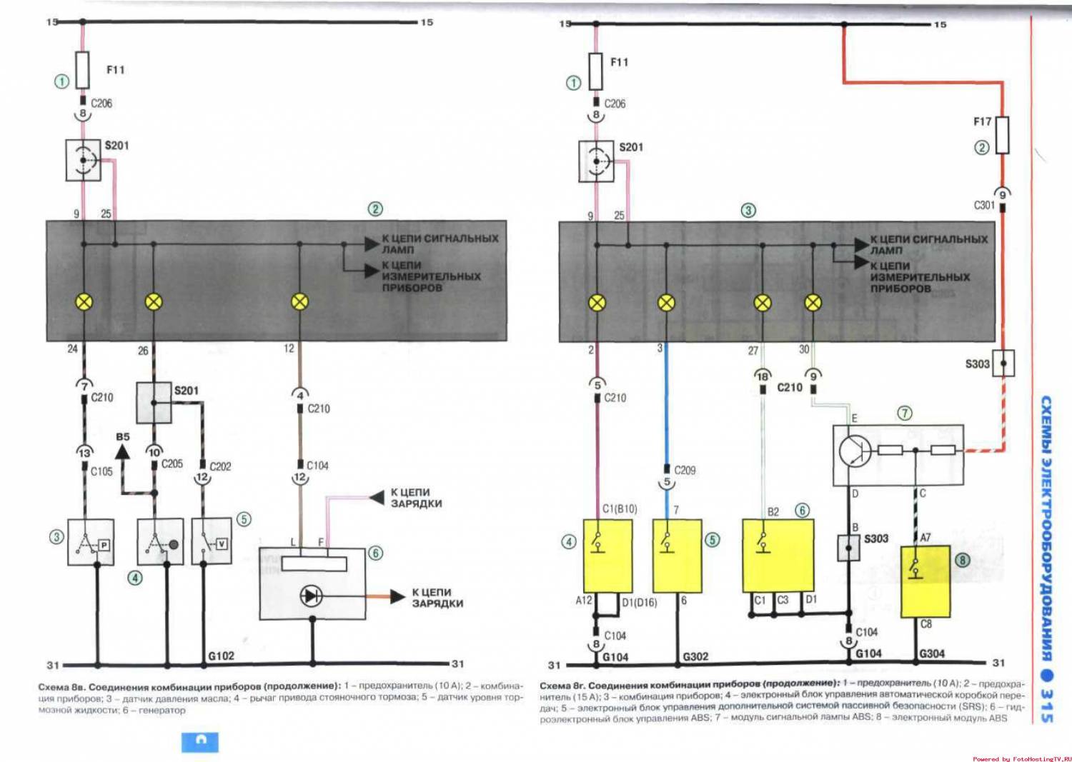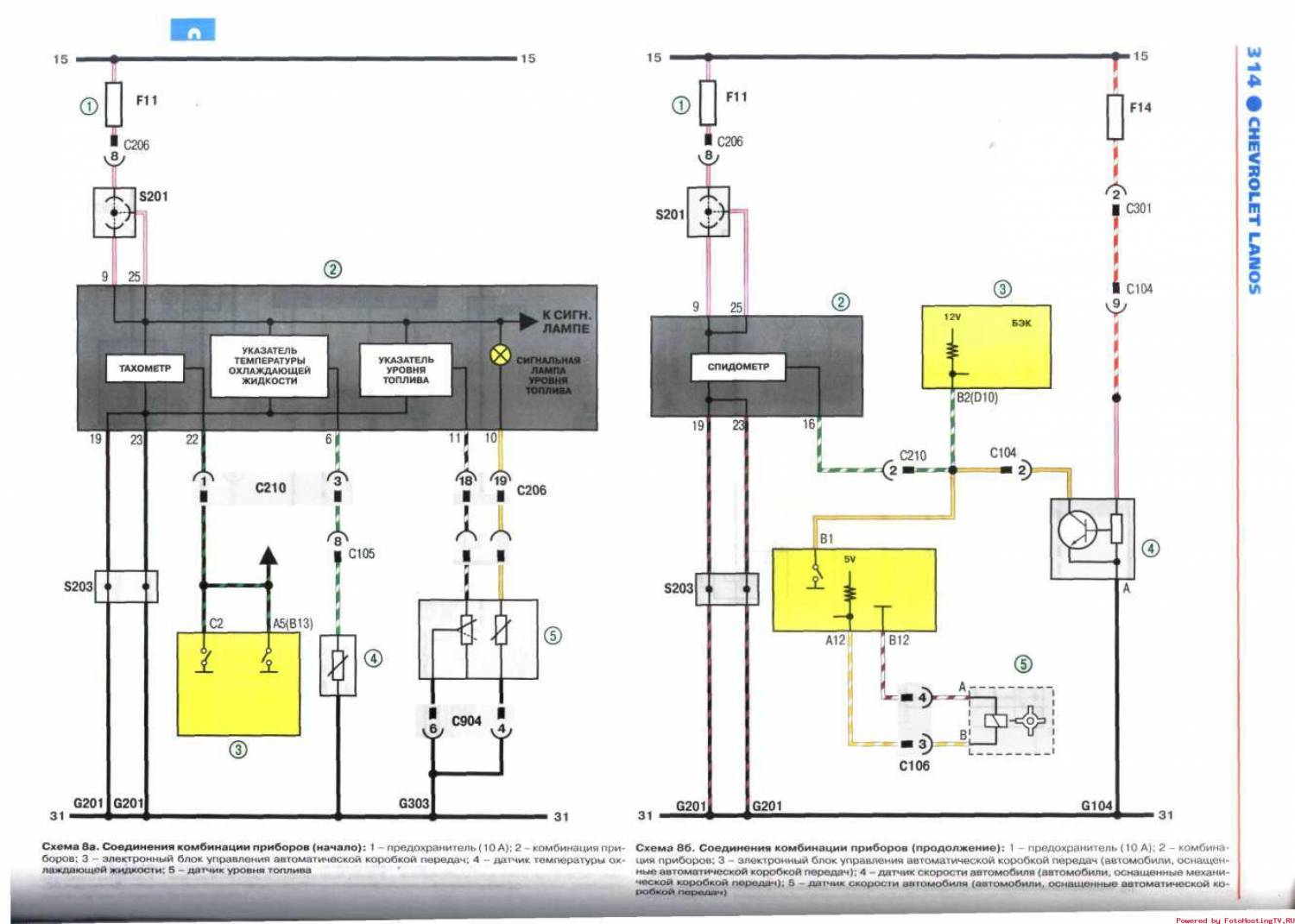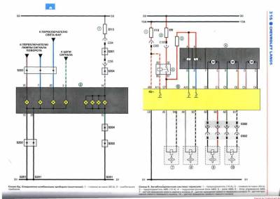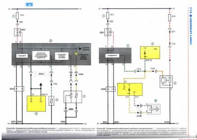 Эл.схема комбинации приборов и АБС тормозов на Chevrolet Lanos
