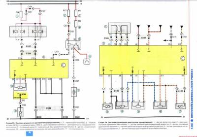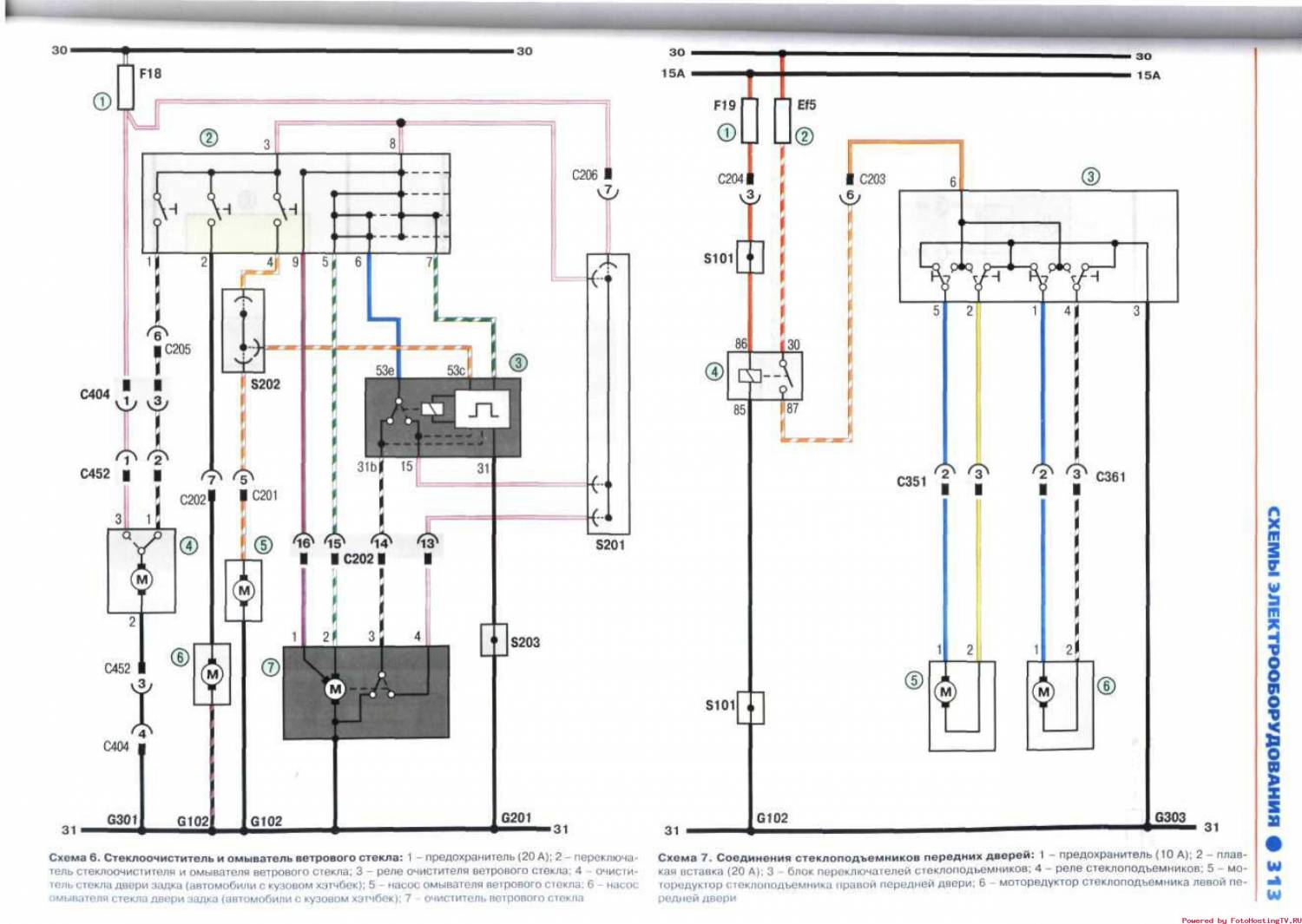 Эл.схема стеклочистителя и омывателя ветрового стекла, соединения стеклоподъемников передних дверей