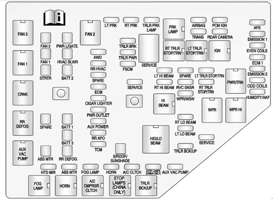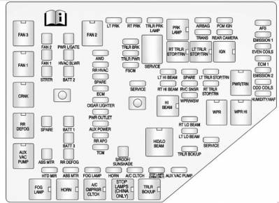 И вновь тема пойдет о Chevrolet и модель ее Traverse, перечень предохранителей и реле к ней. По американским меркам, Chevrolet Traverse — довольно таки прогрессивная машина. Под капотом, спокойно уместился 3,6-литровый бензиновый V6 двигатель с непосредственным впрыском, выдающий 281 л.с. и 343 ньютона-метра. Опциональная выпускная система добавляет ещё 5 л.с. А вот версии с могучим V8 не будет — после остановки разработки нового двигателя, платформа GM Lambda будет обходиться лишь шестью цилиндрами. Вот такие вот новости на данный момент.